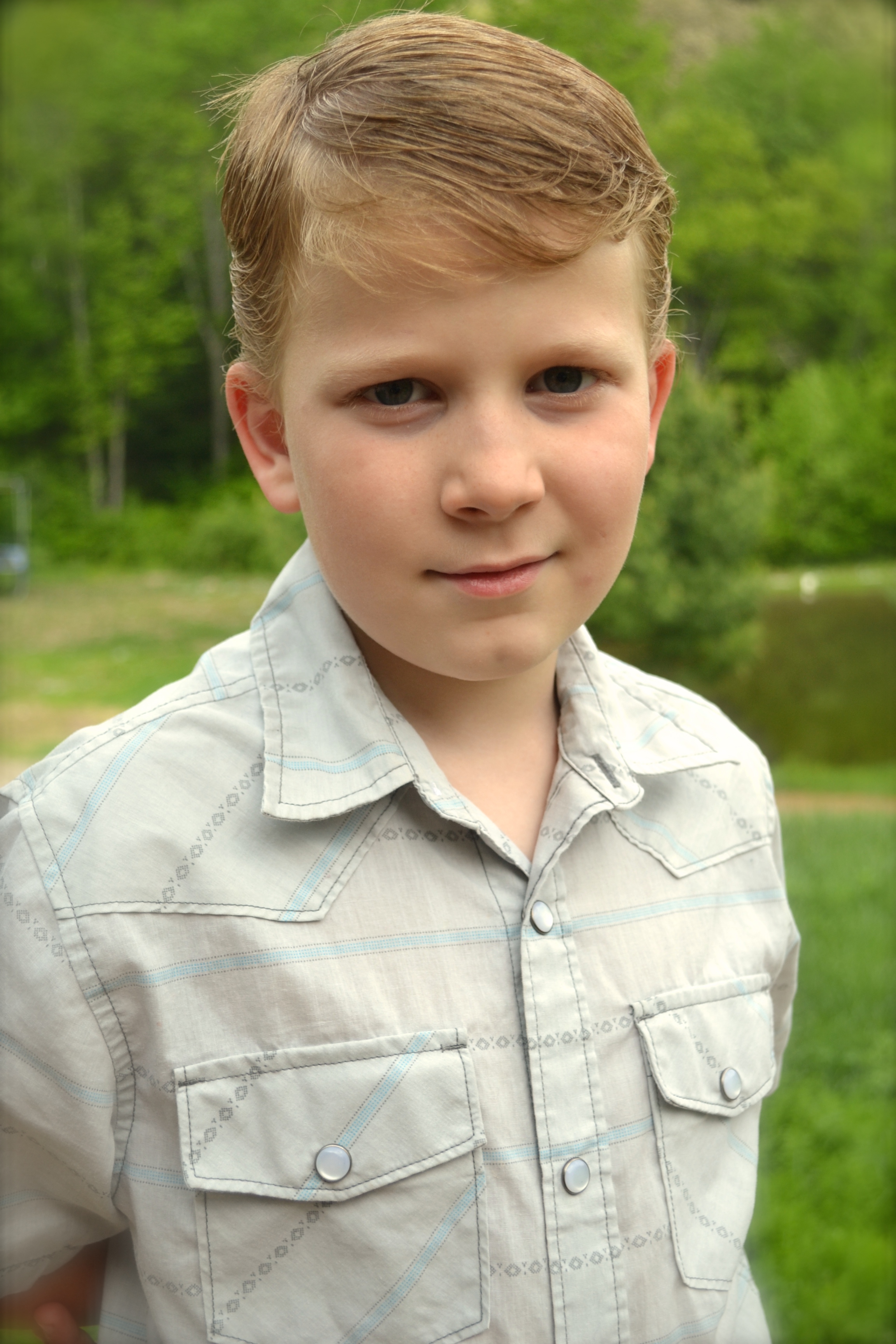 Caleb, our eight year old, had his chorus concert last night so I made him take a shower.  I slicked his hair back good and used gel to make it hold.