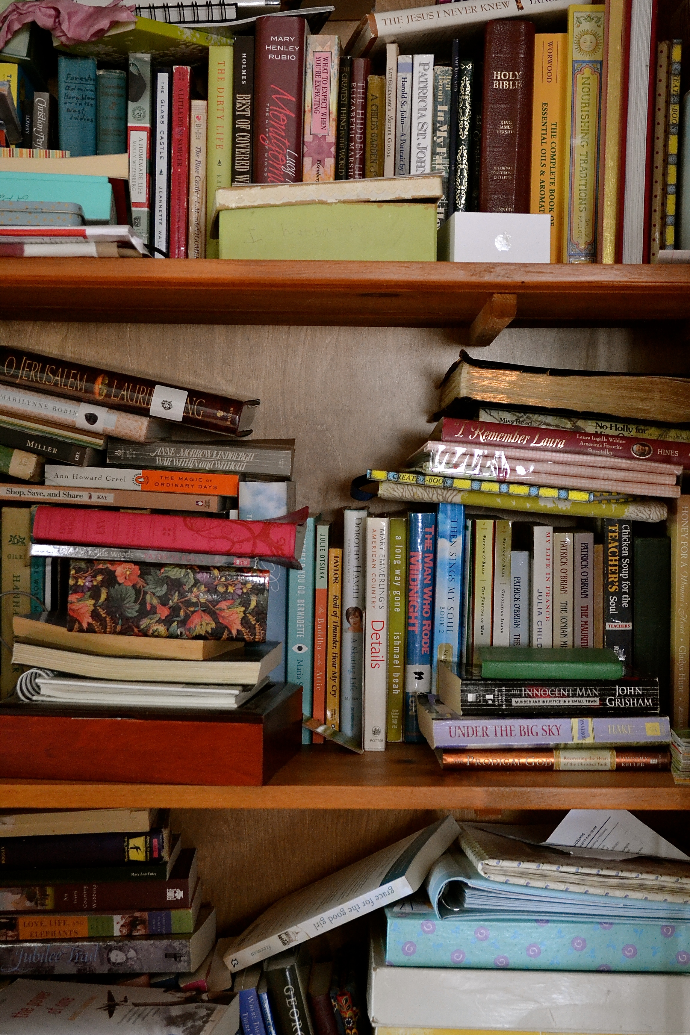Love all the little homey things. I would enjoy a go at your bookcase 🙂 Lilacs and Peonies, I always smell and sometimes buy when I see them here at Trader Joes, because we cannot grow them.