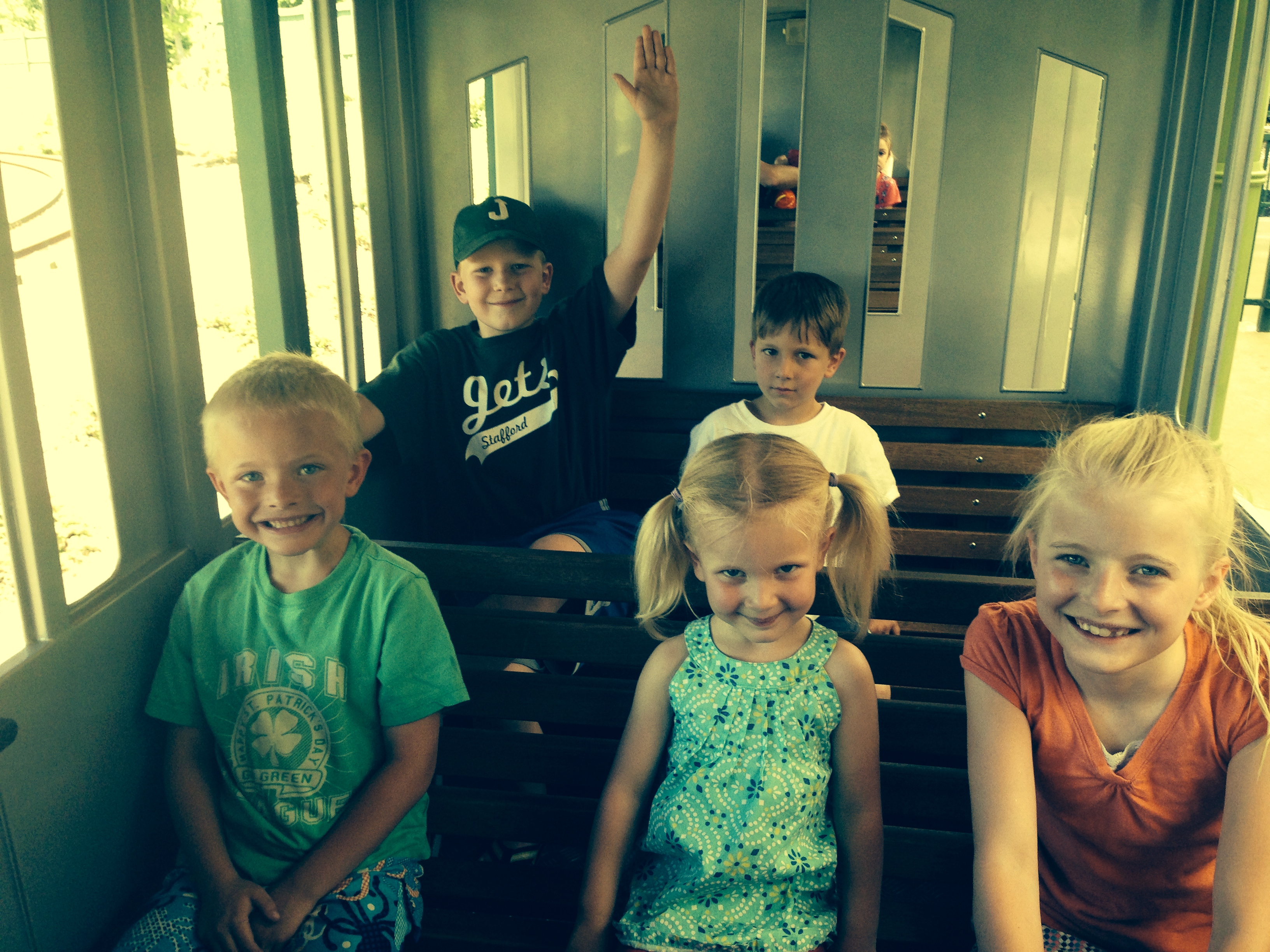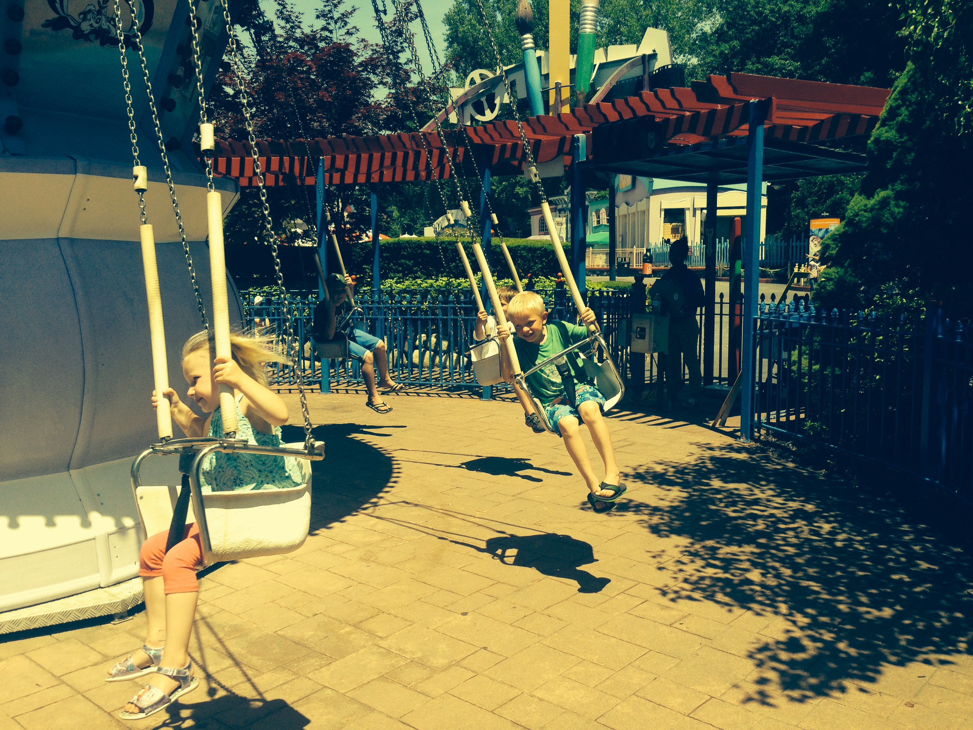 Seth got to ride on a wild ride which Sarah was too short for. He sat with Grace, and when it was over he ran back and waved his arms around to show me how the ride went. Isn’t he handsome? A favorite memory is watching him dance to some of the songs that played in the park, “I like to move it-move it” was his favorite.