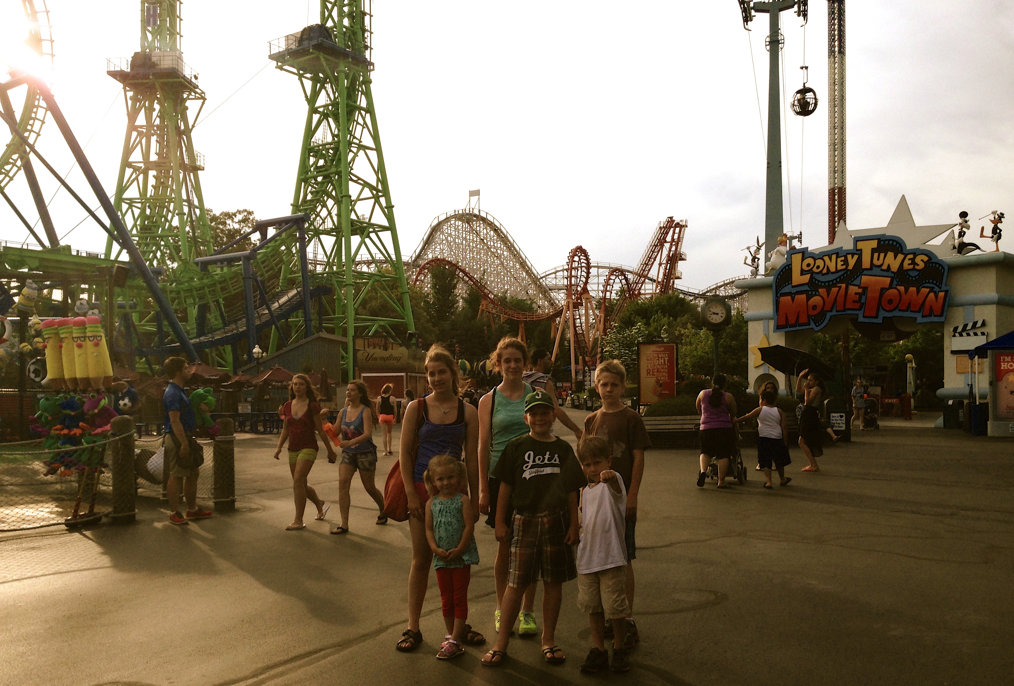 Jacob and Ethan were invited to go with Zachary to Six Flags and yesterday, while they were getting ready to go, my sister Amanda called and asked if I would *go to Six Flags with her*. She had season passes for her and her children, and they could each bring a friend free that day. When Caroline came to pick up the boys I told her I was going, too, and she asked if I would take Allie with me as she had no room in her car for her daughter to go with the boys and Allie wanted to go.