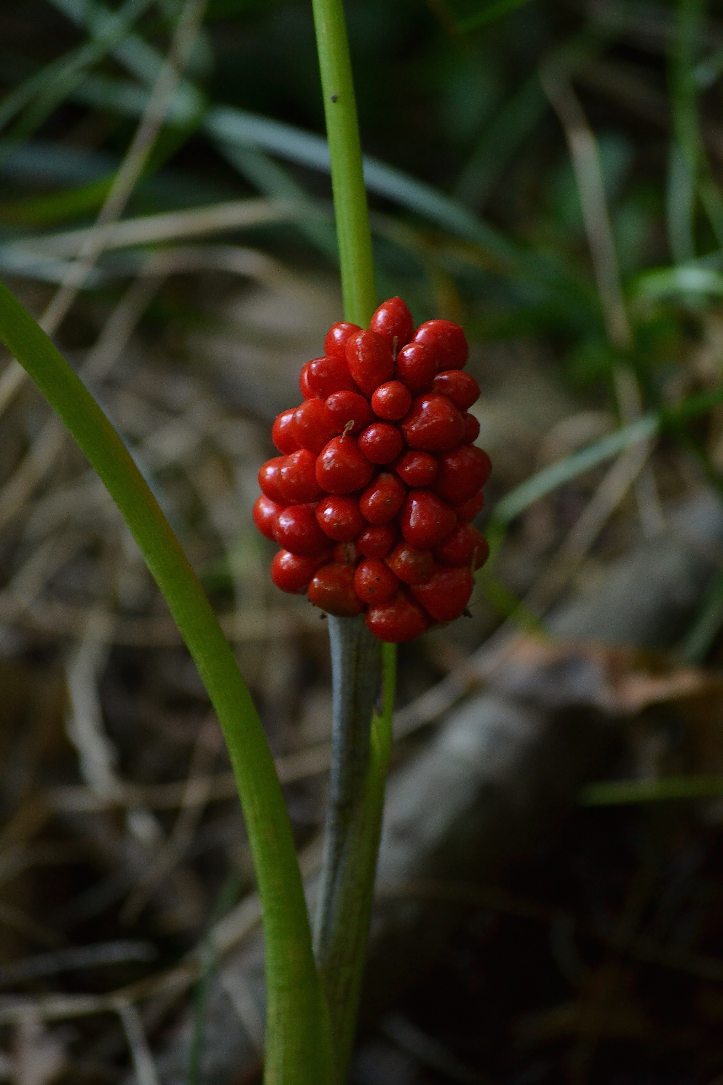 I went for another walk this morning.  These are the berries from a Jack in the Pulpit plant.