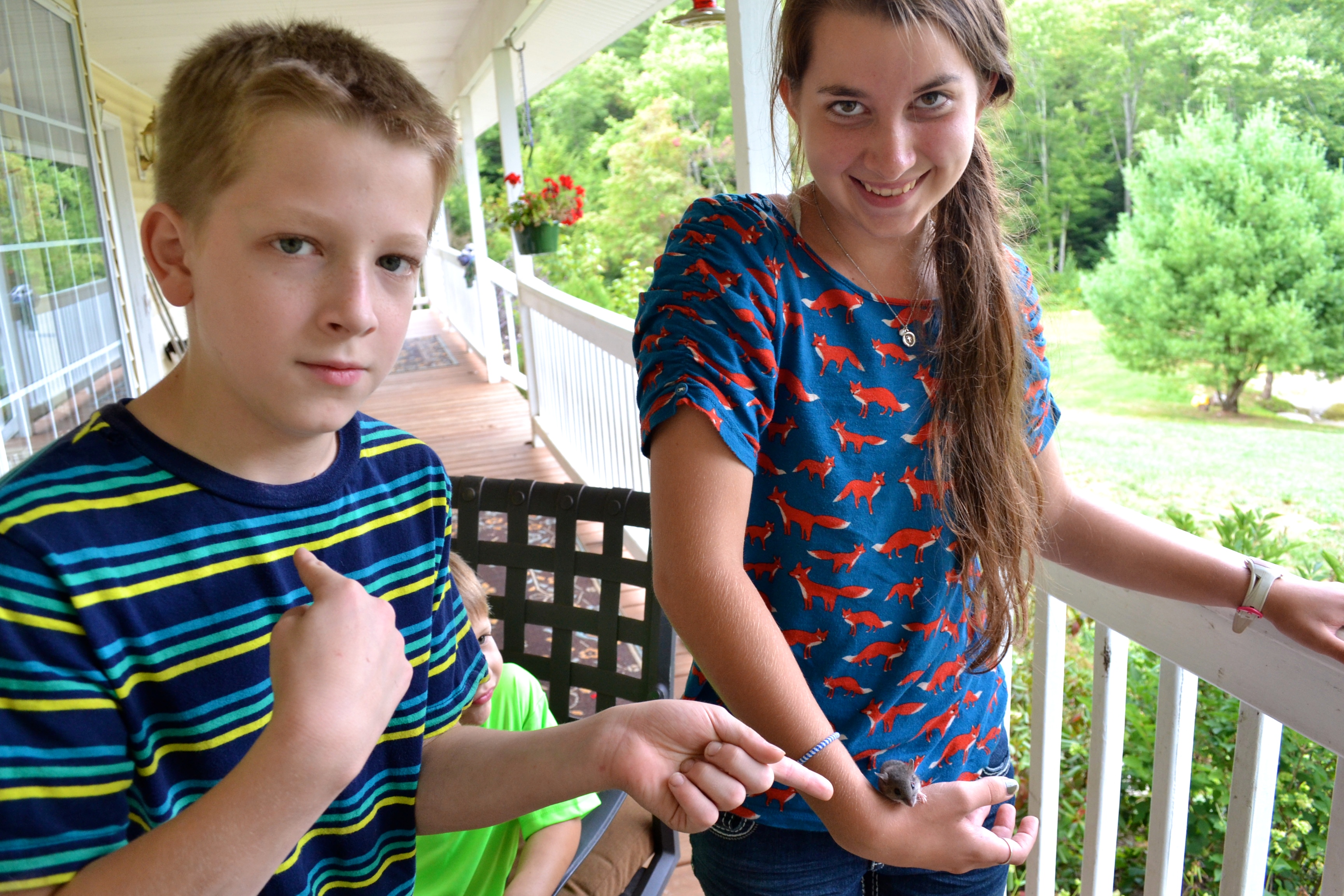Grace, Seth, David, and Sarah marched in a line to the woods and released the mouse with blessings for a long and happy life.