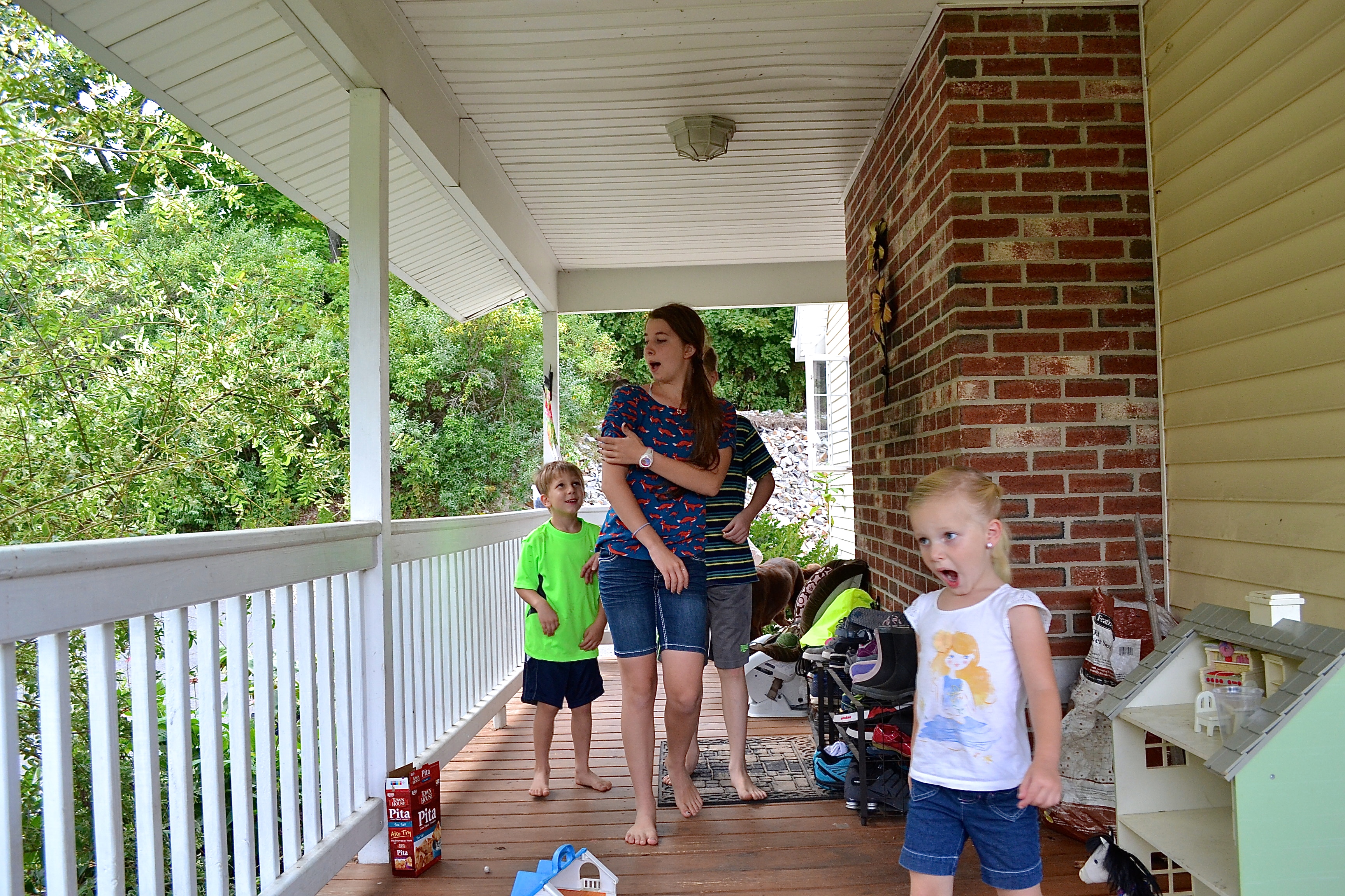 They started going into the house to show Dad but I began to yell about how unwise that idea was……what if Timmy got away?