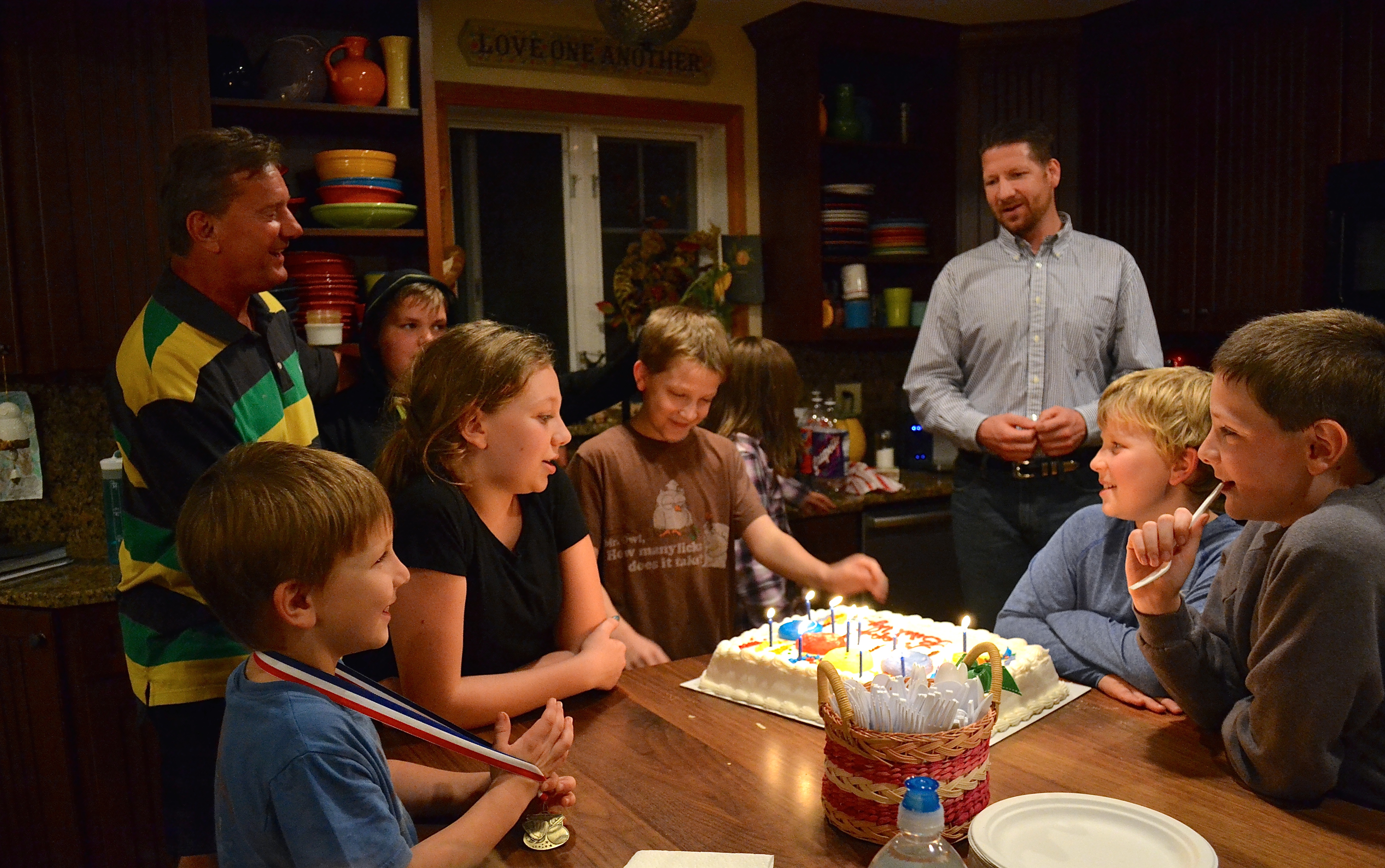 Last night we had a house full of people for dinner and Bible study, so we decided to have David’s BIRTHDAY cake a day early.