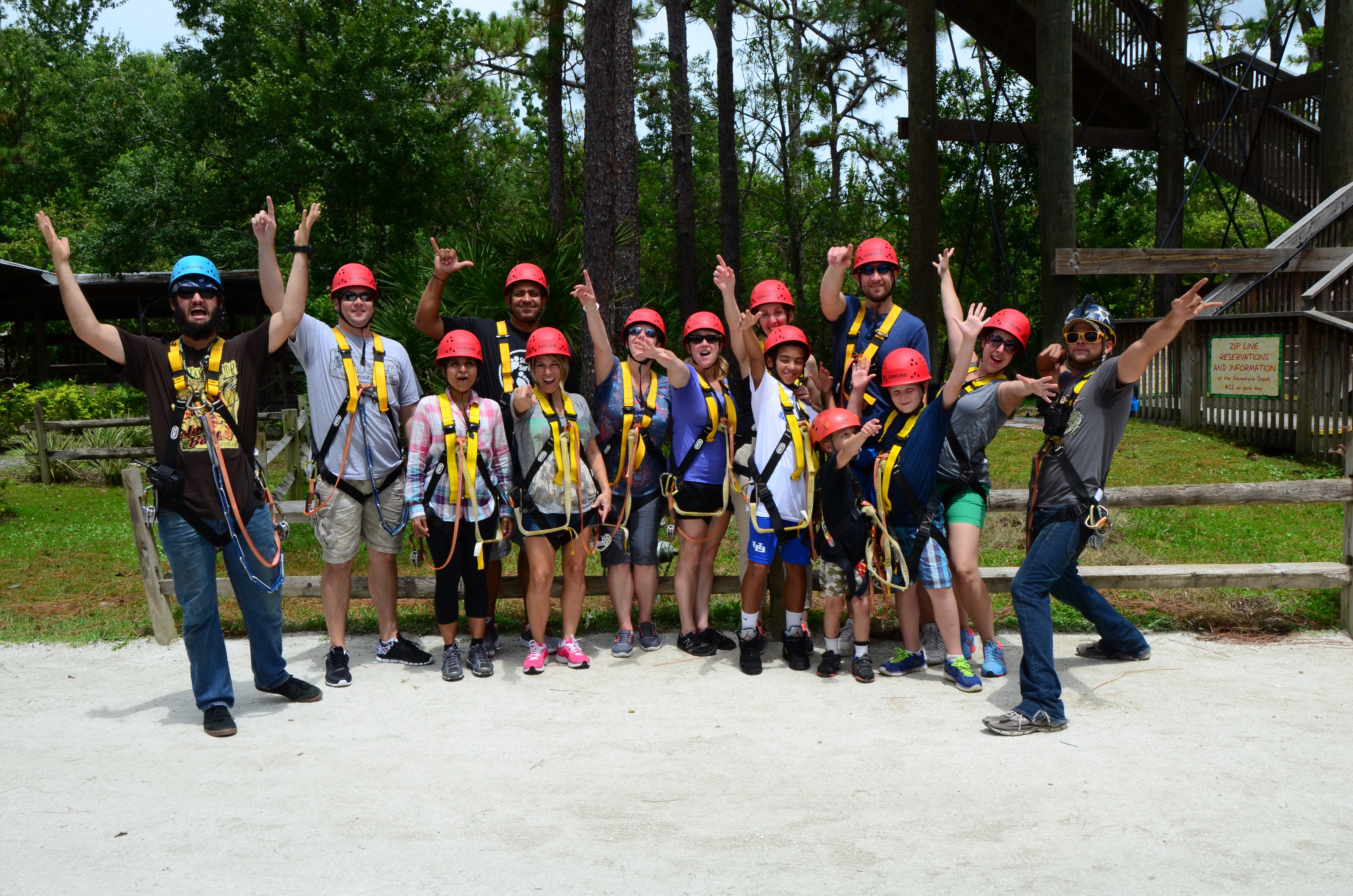 Rich and I went to Orlando with Caleb and Seth this summer.  I have already blogged about the majority of our vacation except for the fact that we went zip lining.  Gatorland doesn’t allow people to zip line with personal phones or cameras, so our group was photographed by a Gatorland photographer.  We purchased the CD of all the photos, and I just got them saved to my computer this past weekend.