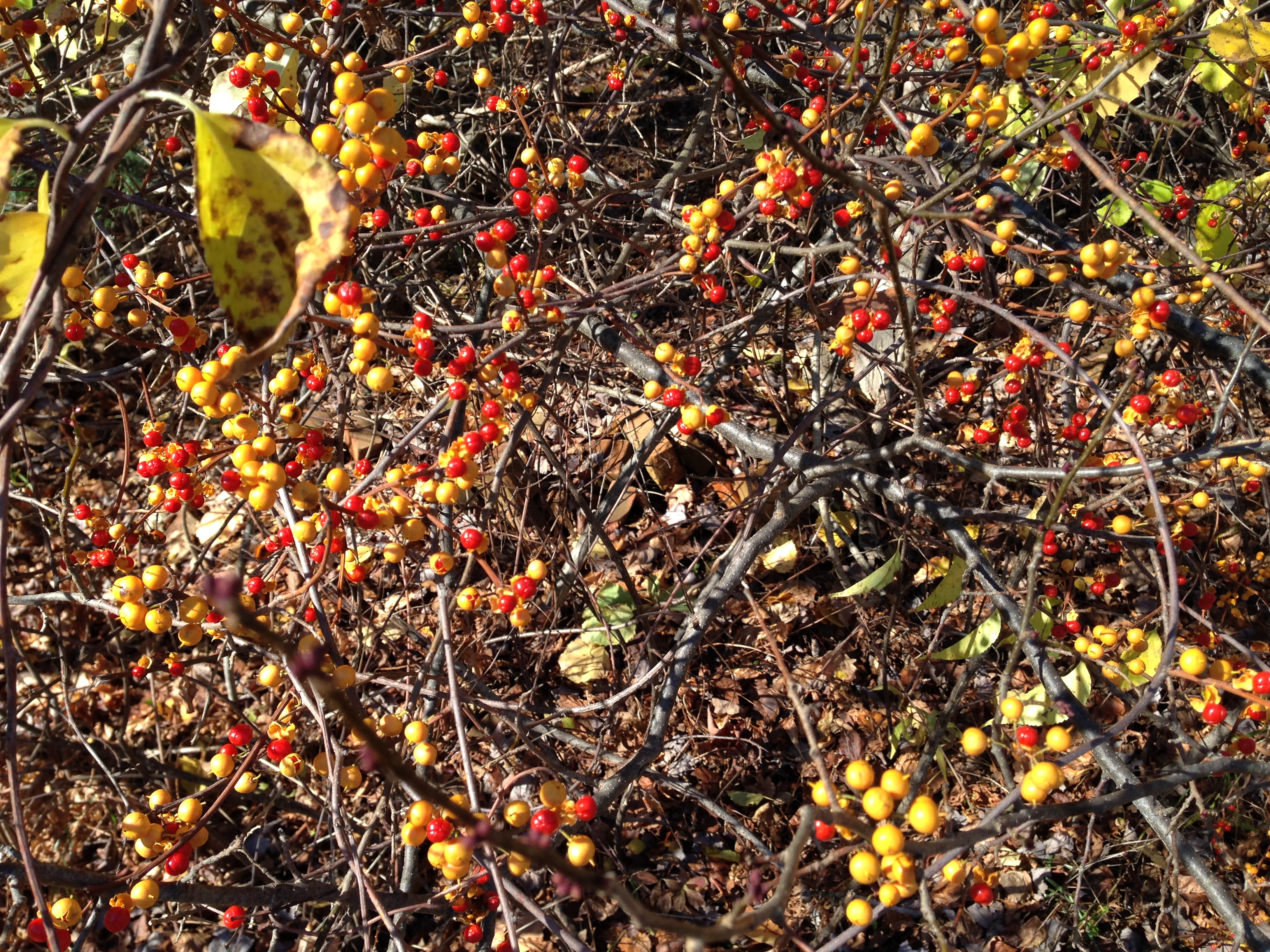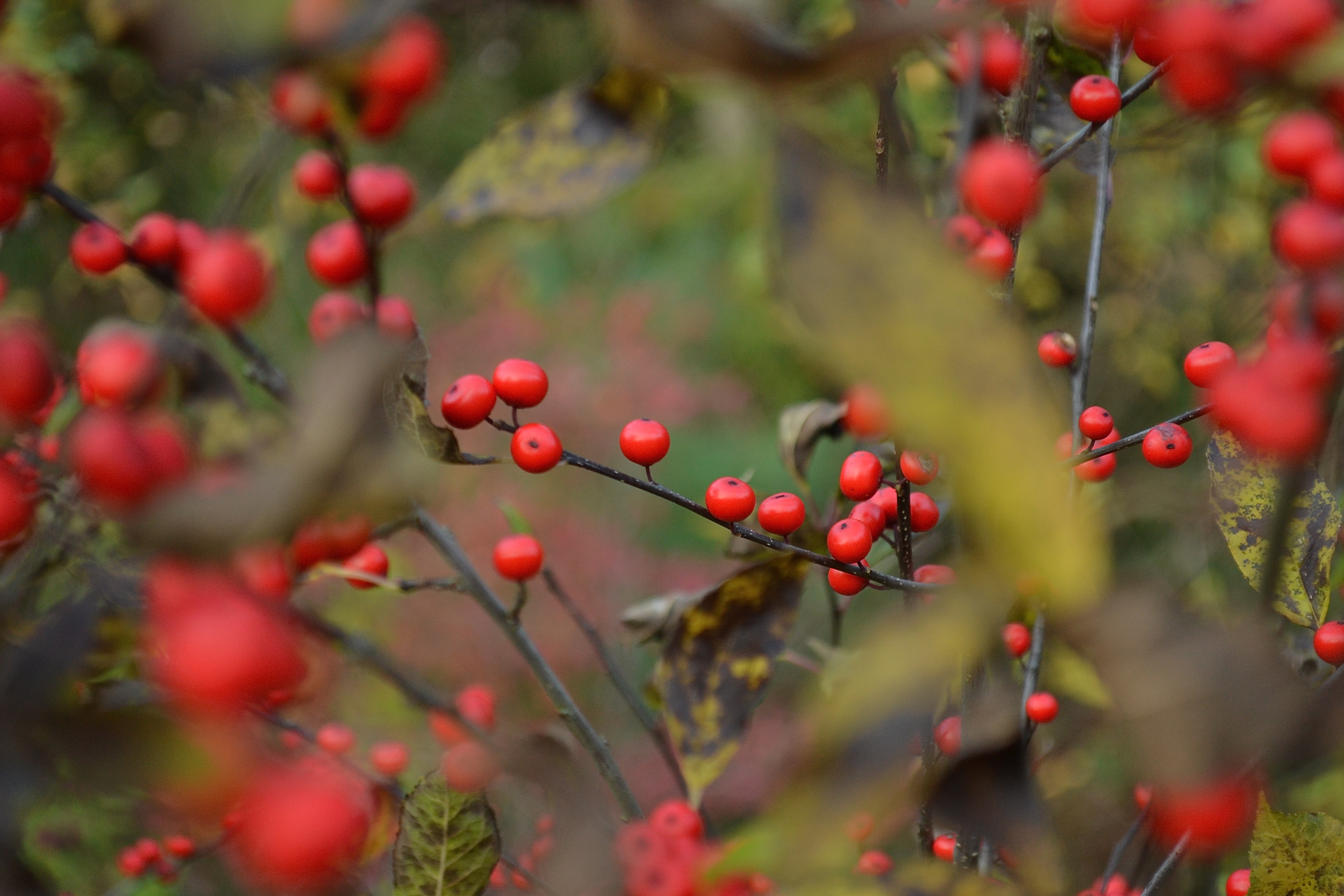 How have you been? Here at our place we have been enjoying yet another beautiful autumn season, and the trees are almost bare. There are still bits of color, however, in the few remaining leaves and bright red berries.