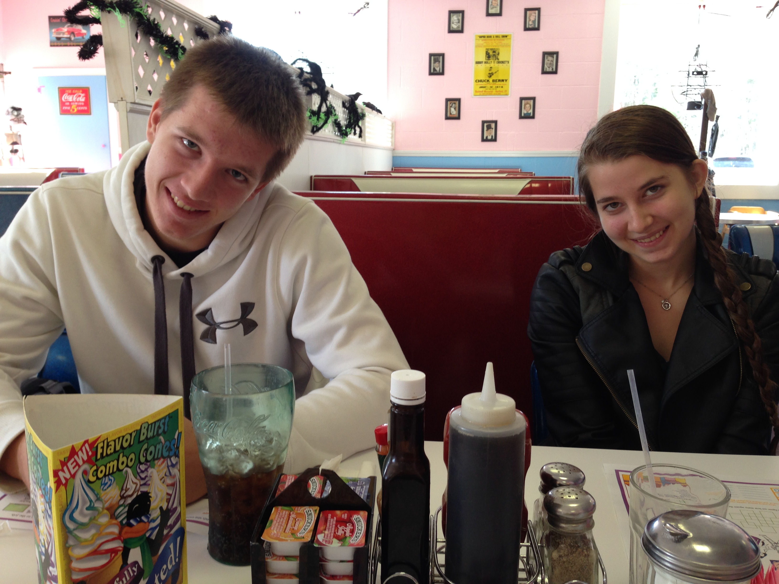 On Saturday Rich and I took the children (Jacob, Grace, Caleb, Seth, and Sarah) on a four mile walk all the way to the local diner, over back roads. David was tired and Ethan had a report to write, so the two of them stayed at home.