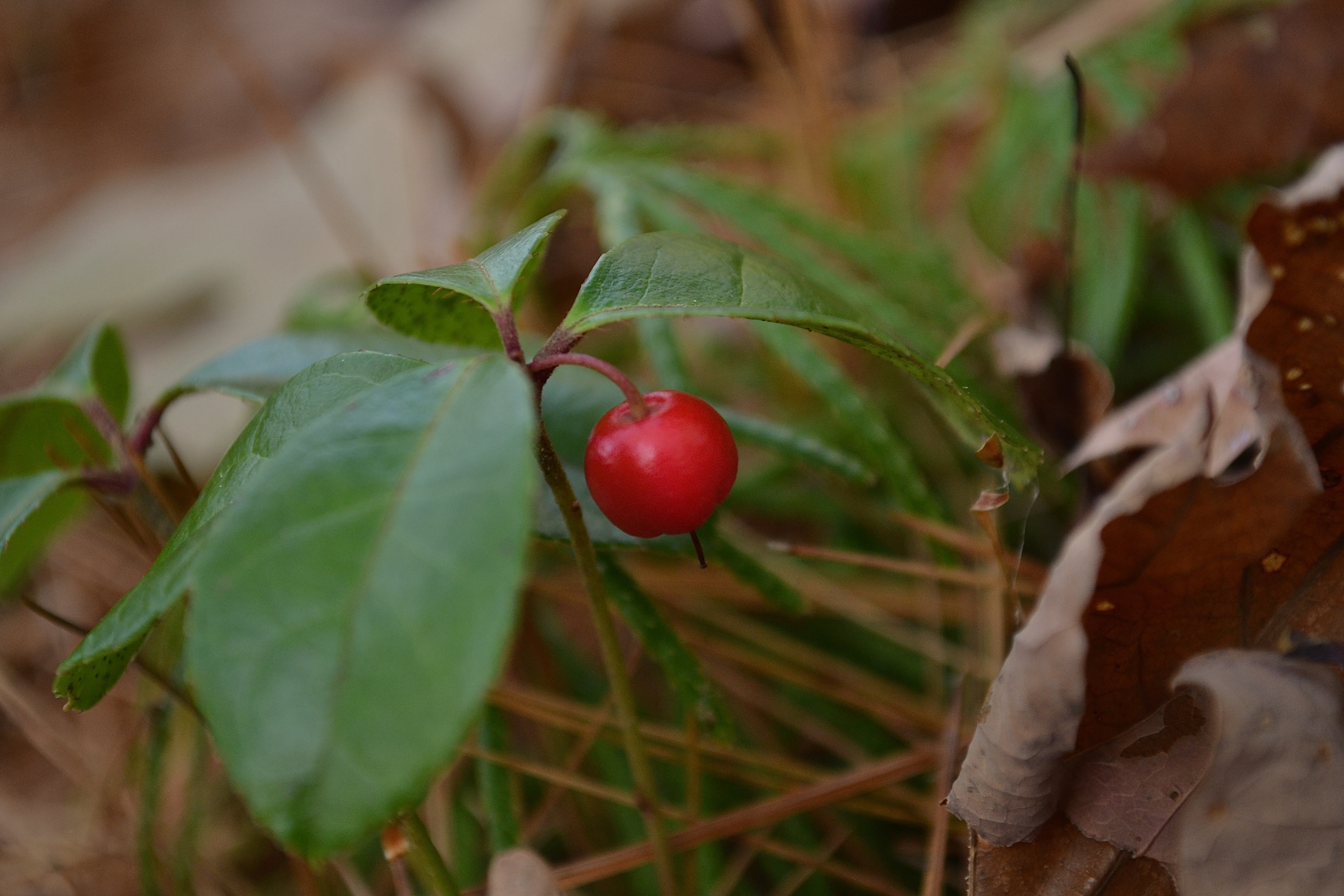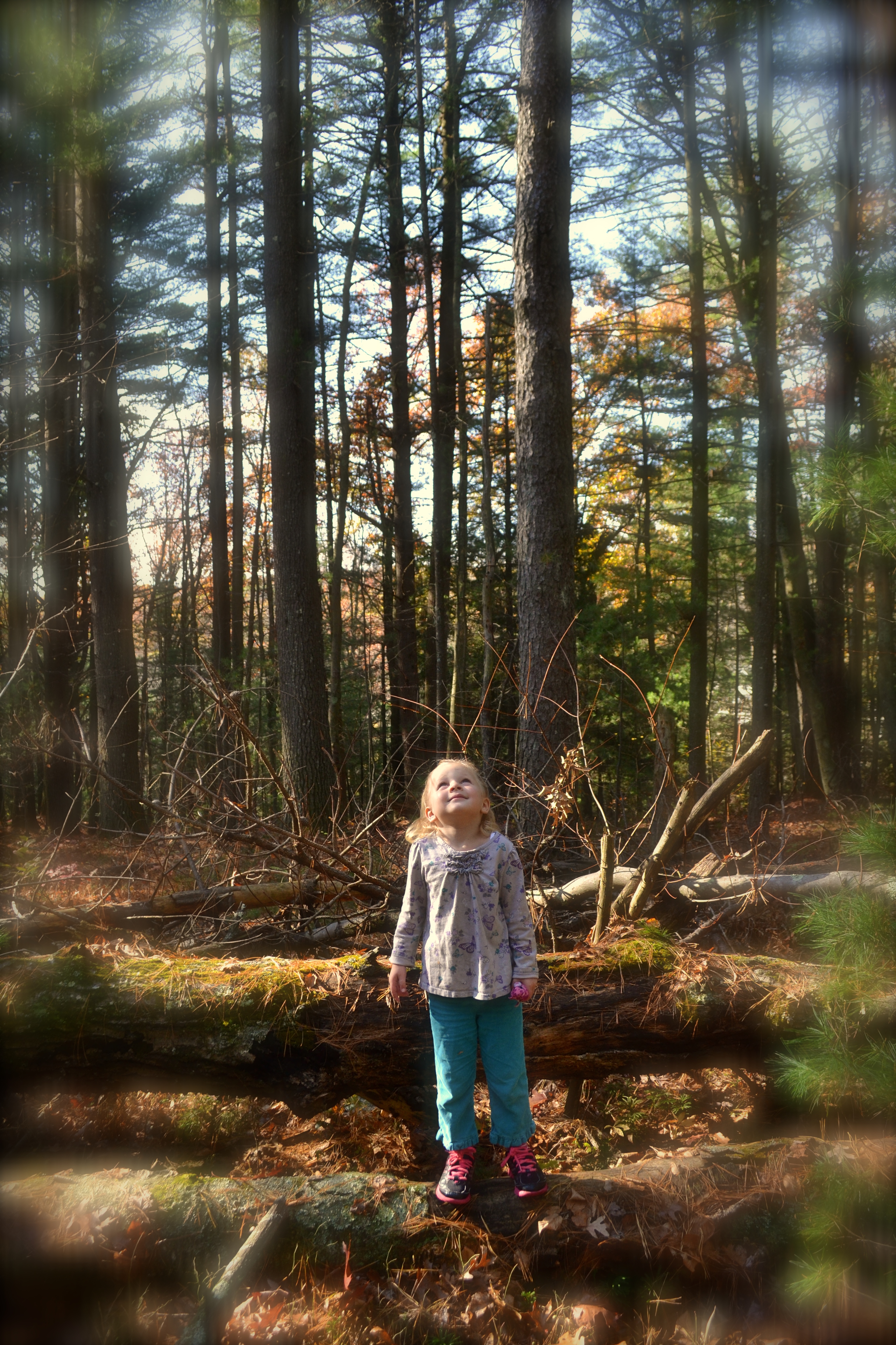 Late this morning I took little Sarah on a short walk through the woods and into the field, wandering about, going exactly where we wanted to go. Underneath our feet were brown pine needles and crispy leaves. The sun was shining. Everything was bright, fresh, and lovely. We ate a few wintergreen berries and Sarah talked about nothing and everything while I dutifully listened and took snapshots.