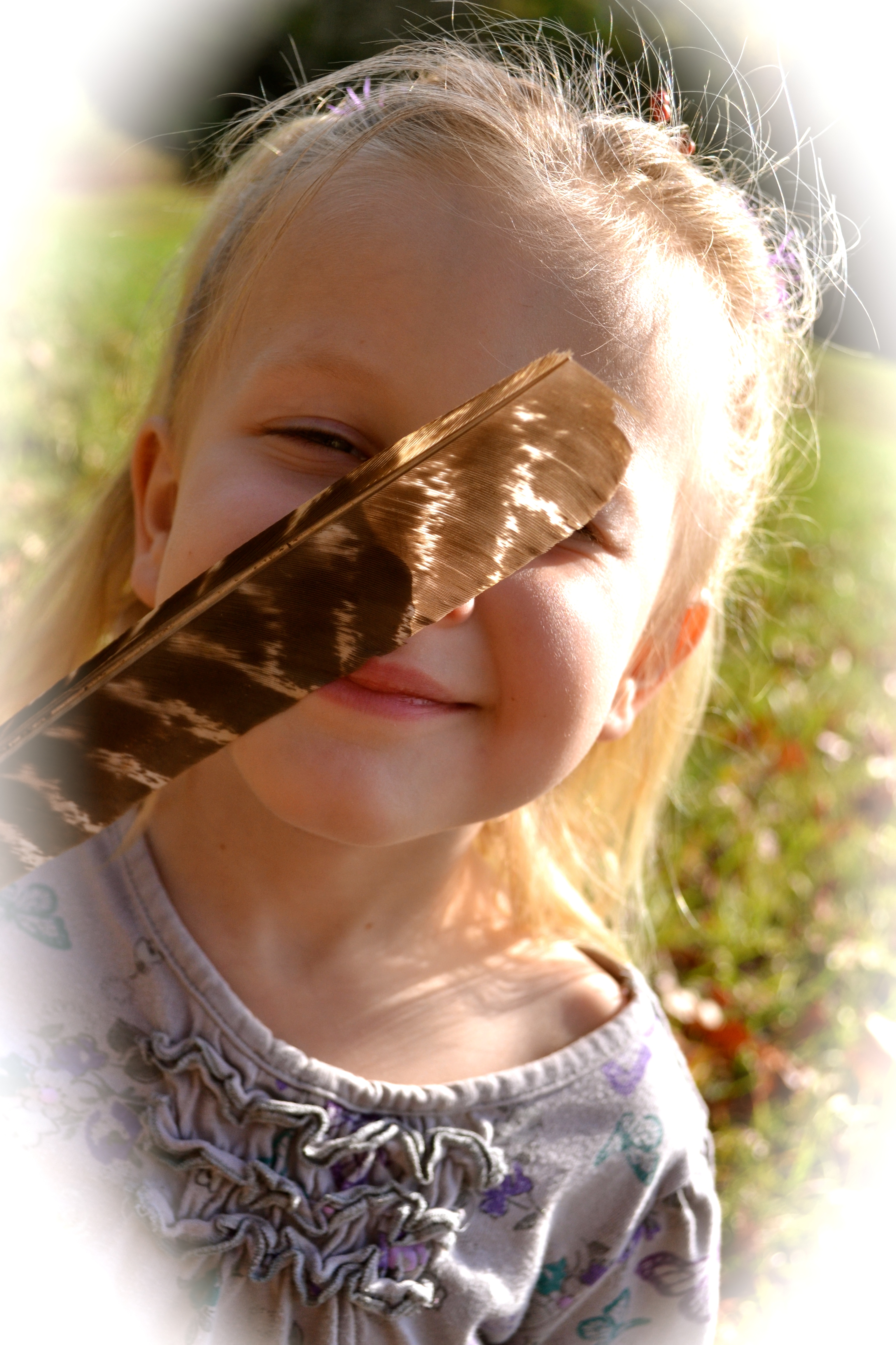 She was so pleased with her turkey feather. In fact, as soon as her Dad came home from work she showed it to him. He said it was the nicest he’s ever seen.