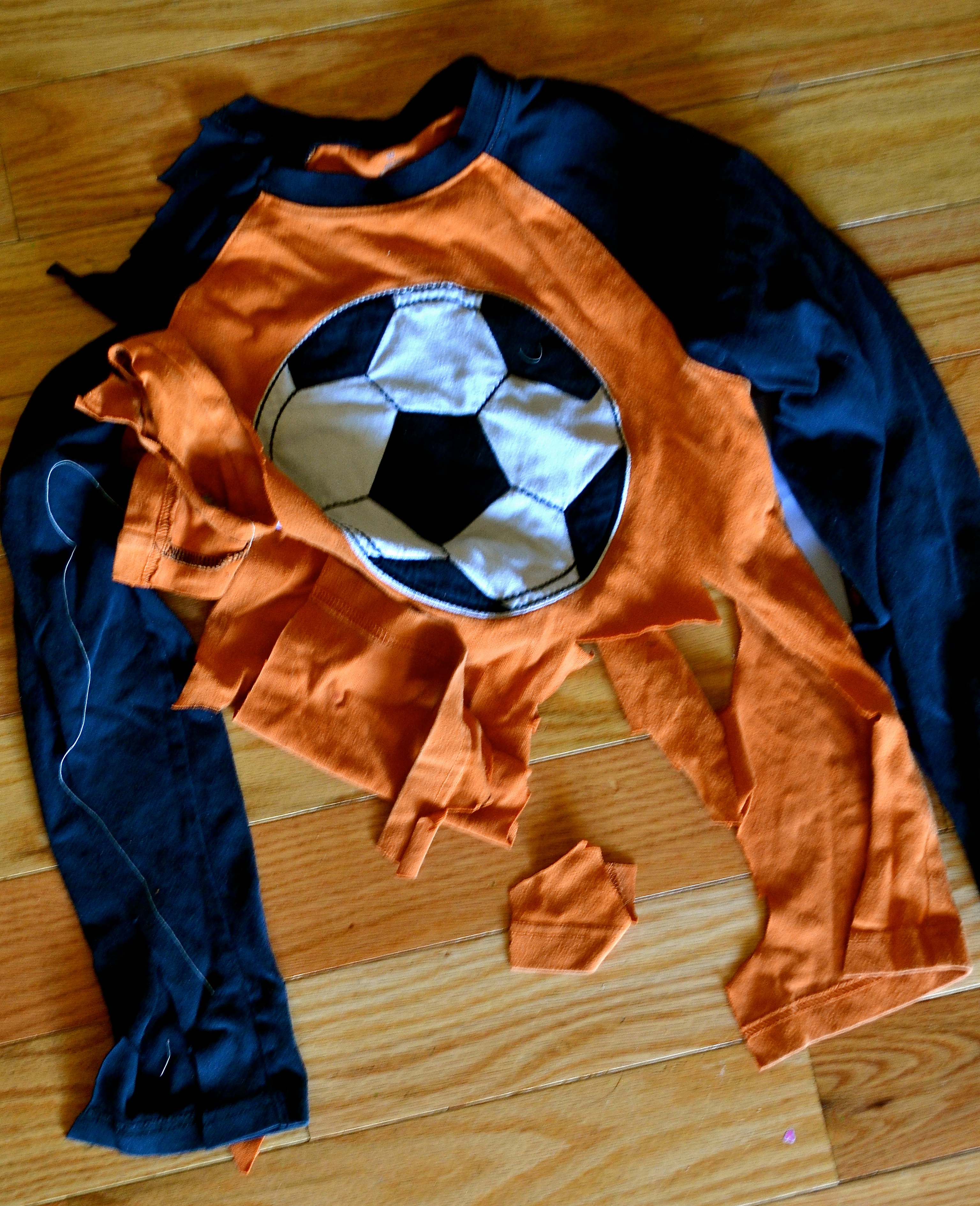 First of all, he needed some orange material.  He had just the thing in his dresser.
