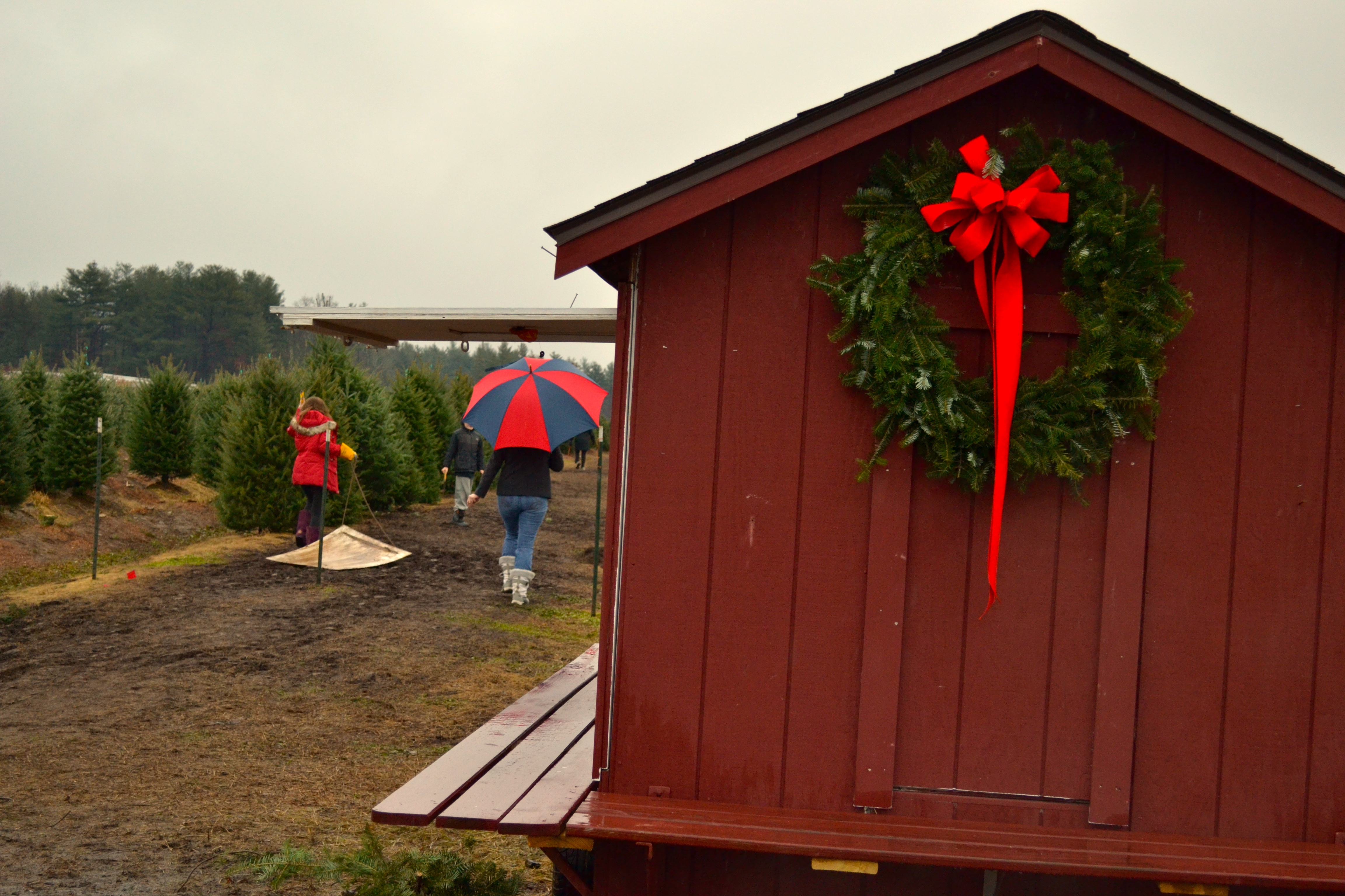 The tree farm was busy despite the rain. There were a line of cars with people tying up their trees. We couldn’t help getting excited about finding just the right tree.