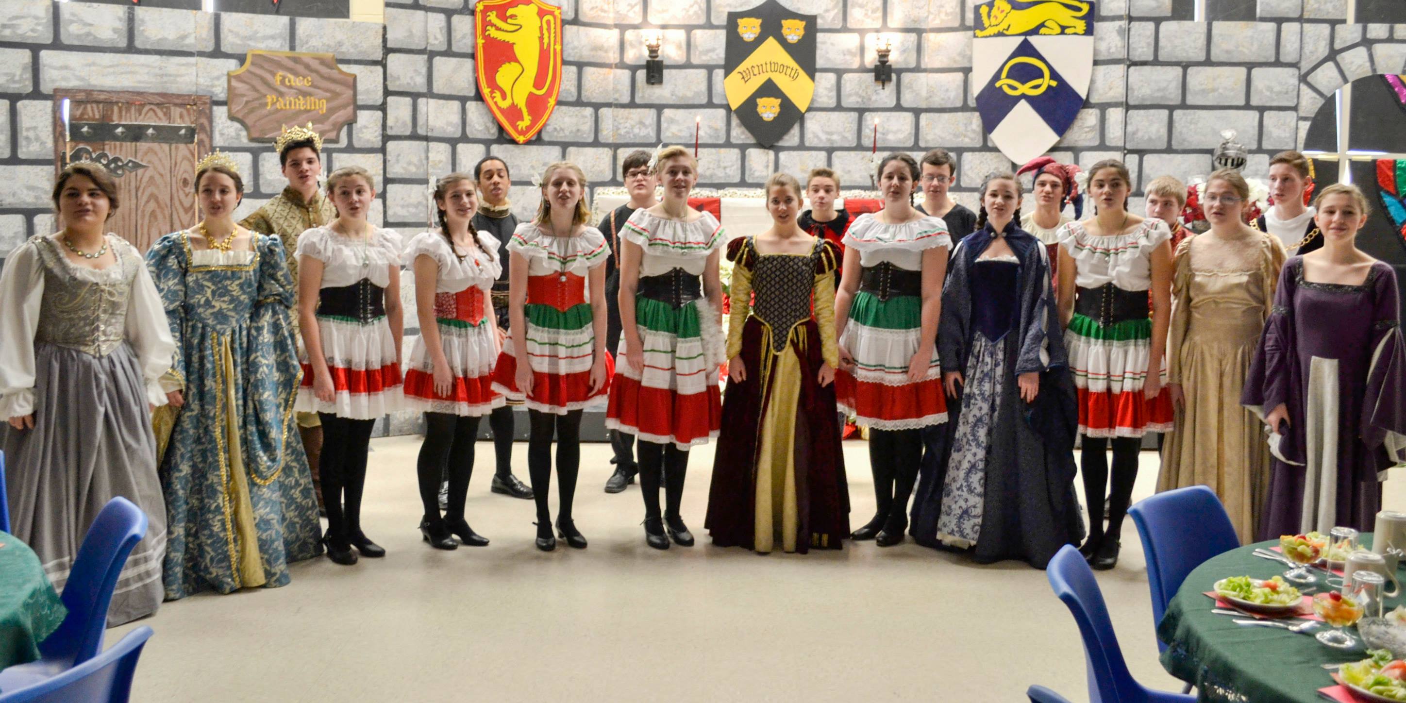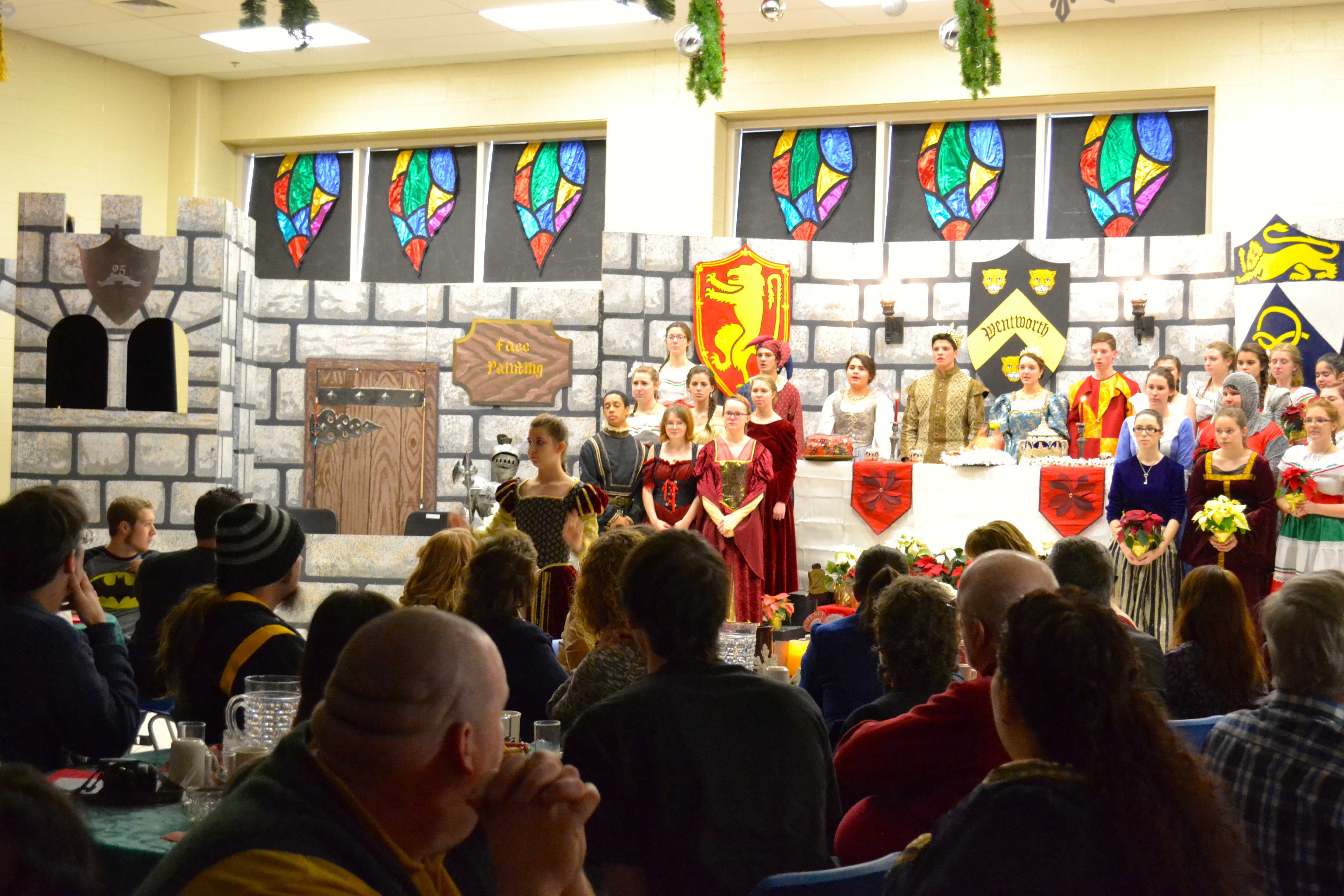 The music director at our local High School has put on a weekend of Madrigal Feasts for the last 28 years.  Grace was involved for the first time last year, as a Freshman, and I was so impressed by it that this year I bought tickets for Rich and I, plus Grace’s six siblings.  The tickets were 15 dollars a piece and the kids perform three times over the weekend to a packed house.  It is a great fundraiser for the music program, and they also donate money to a local charity.  The first two Feasts were in the evenings.  Rich and I went on the third day, Sunday afternoon, to avoid having the children out late.