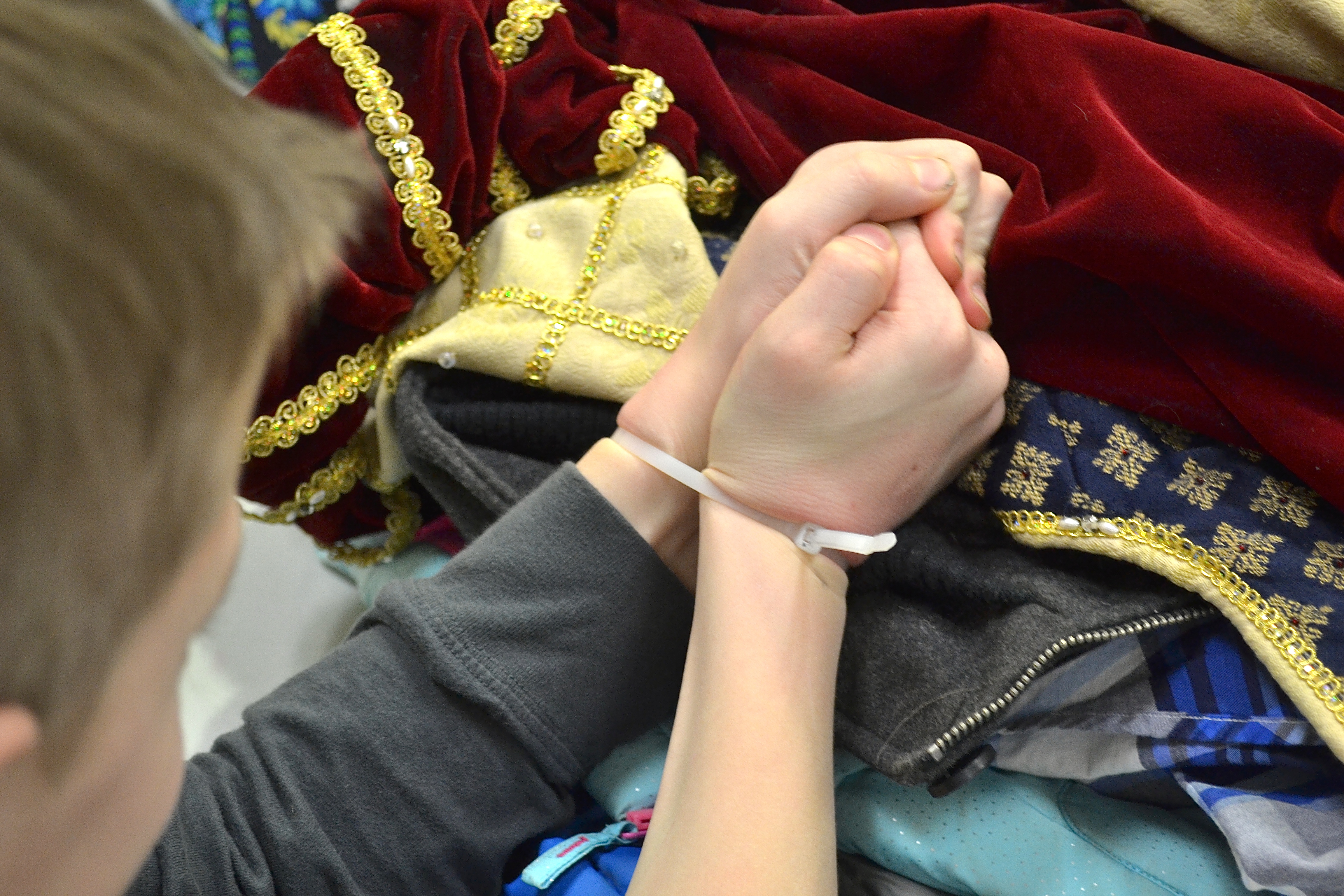 This was embarrassing.  David, my magician, came to me with this plastic tie around his wrists and asked me to tighten it for him.  Even though my inner motherly instincts were screaming “NO DON’T DO IT” I tightened it.  “More than that, mom”.  Okay, I tightened it more, as per his request.  Well, he thought he could use magic to break free, but it never happened…..as he struggled, another mom came by to say hello to me, and to my horror, noticed Dave whose hands were turning an unnatural shade of pink, “Oh, that’s not good, David, you shouldn’t have that on your wrists.”  “It’s MY MOM’S FAULT,” he replied, “She’s the one who did it.”  Nice, Dave, nice.  We finally found some scissors and Emily cut it off.