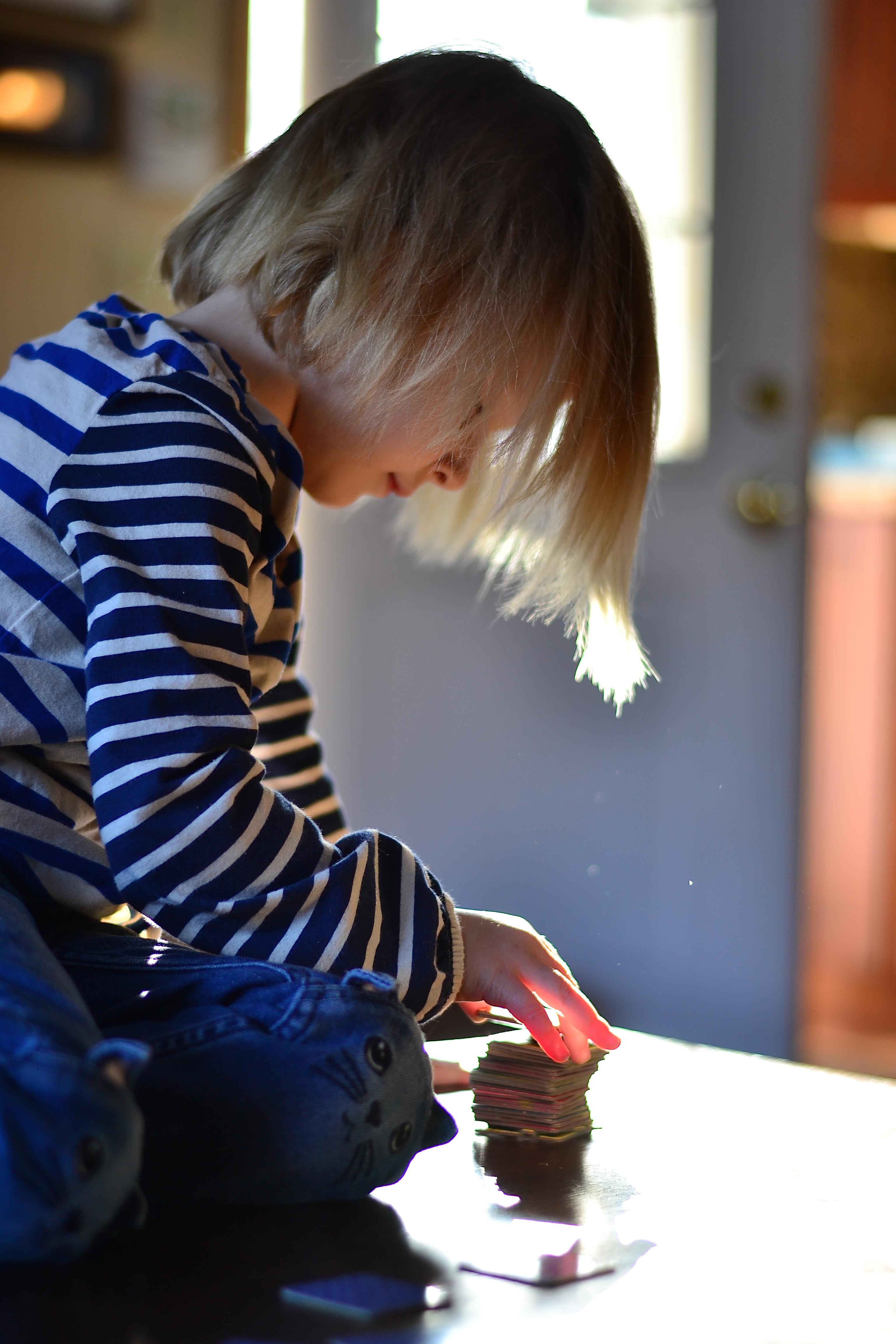 Sarah is getting better and better at the matching game.  If I miss a match she reassures me by saying what I say to her, “Don’t be sad, you just need to think about it and remember where it is!”