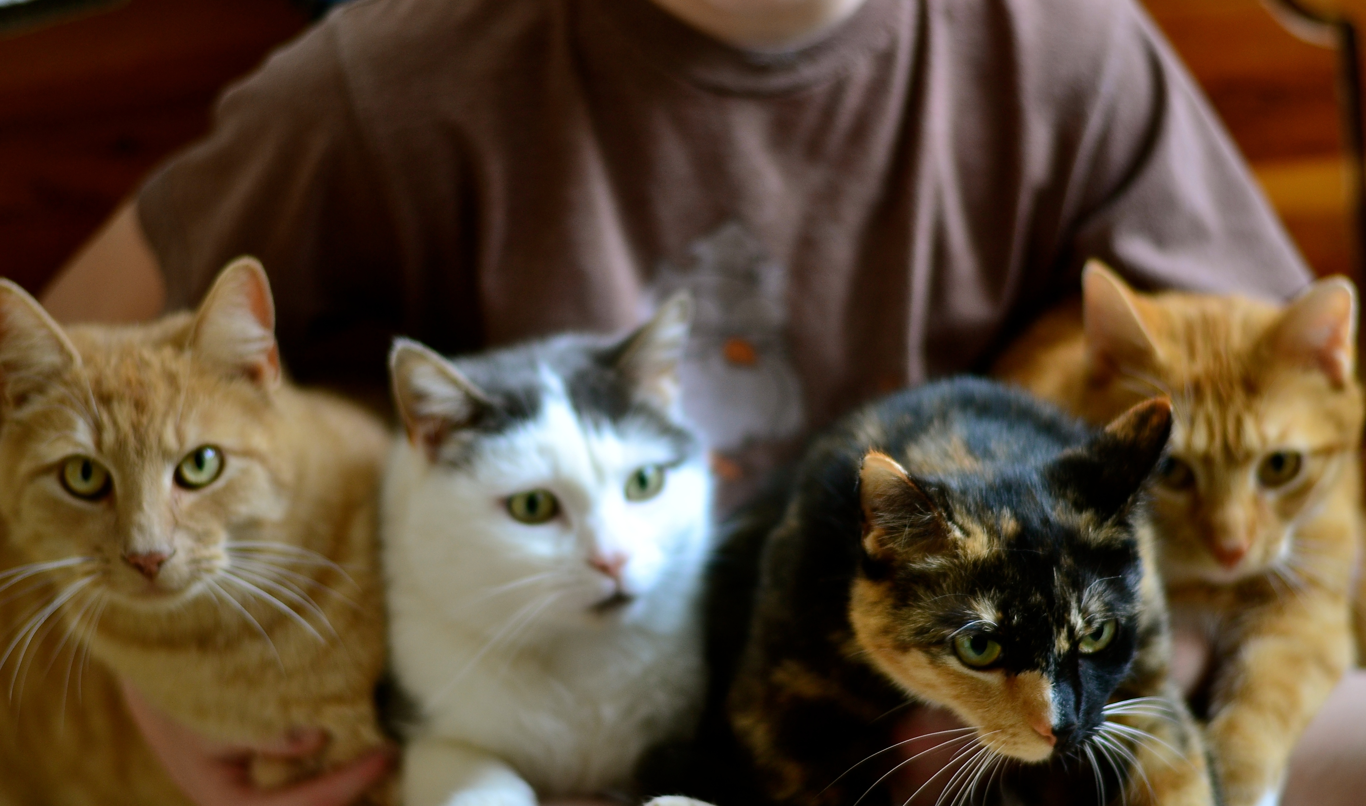 Just for the fun of it David shut all the cats in the bathroom and then we took a picture, which was very very hard to do.  Billy kept leaping away with a yowl.