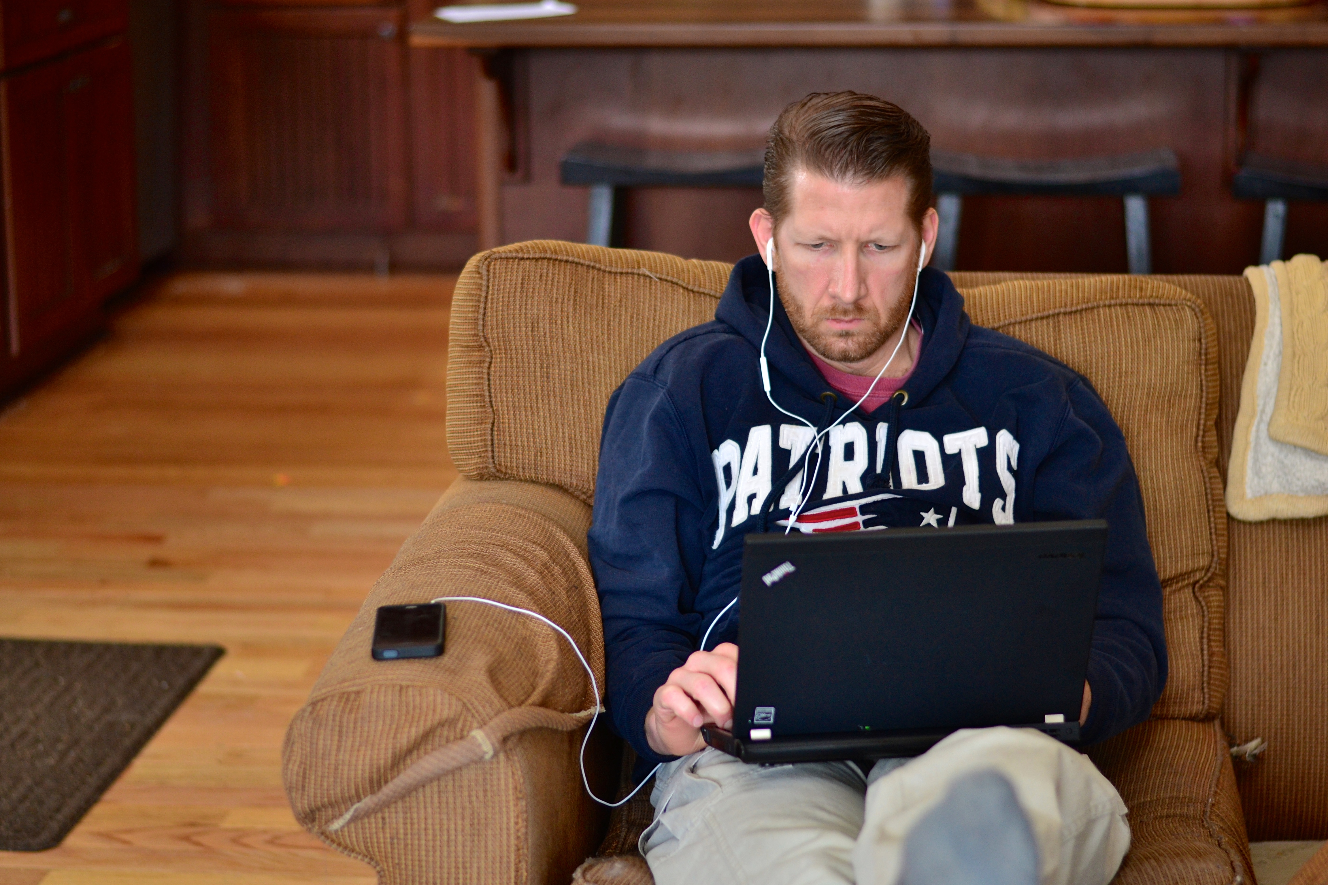 Right after I asked Rich if he was going to eat his muffin (it had been on his plate for an hour), Parker stealthily walked around the coffeetable, picked it up with his teeth, and went over to the kitchen to eat it on the rug.
