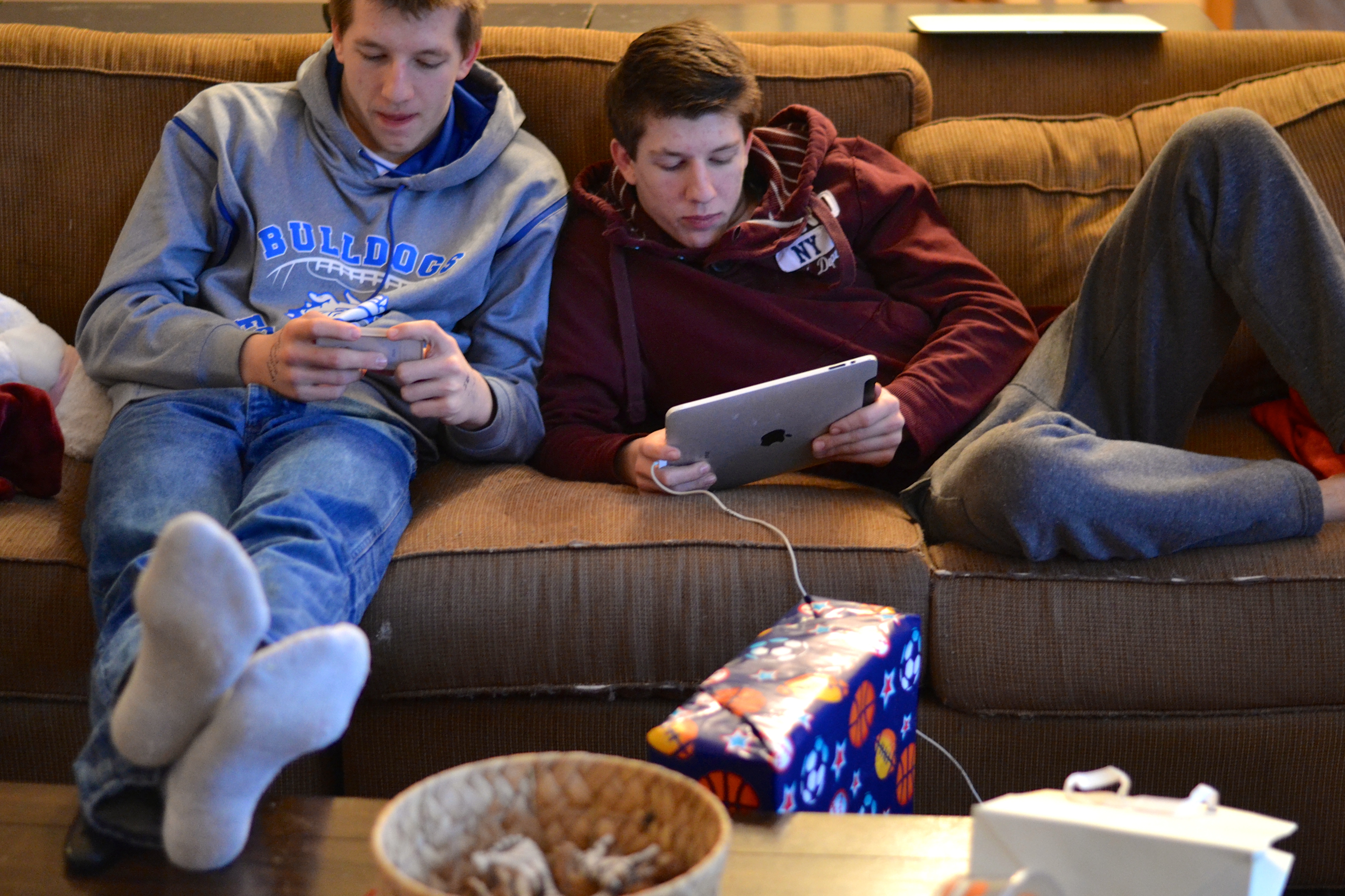 I had made Ethan wait until later on in the day to open his gift, because Rich was the one who took care of everything, although Sarah and I wrapped it. Look at those faces!