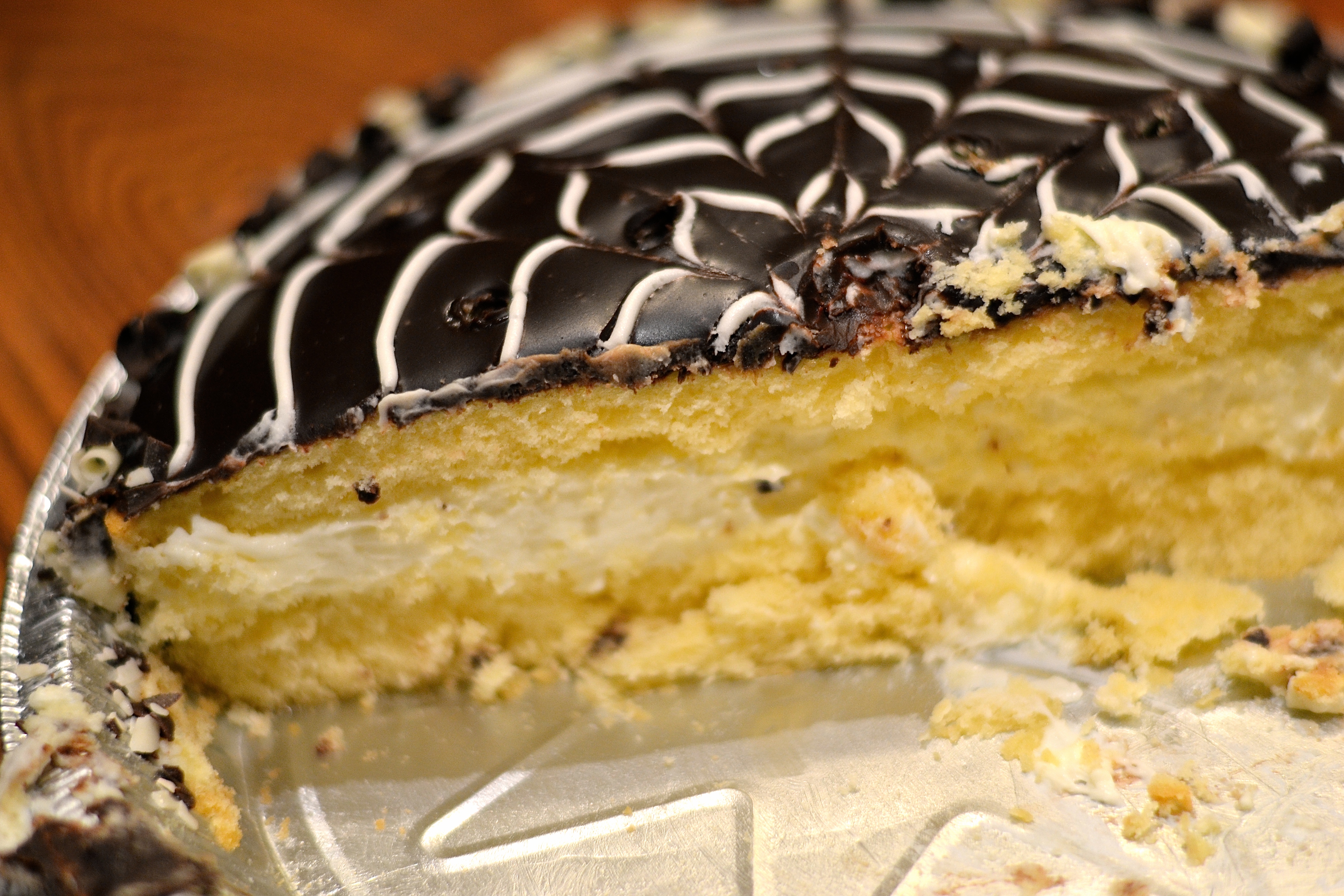 I, for one, became over-stuffed with pie. Look at that cream in the middle! And it’s real! Not cool-whip or frosting, but real lightly sweetened whipped cream. The cake (Boston Creme Pie, rather) was entirely delicious.