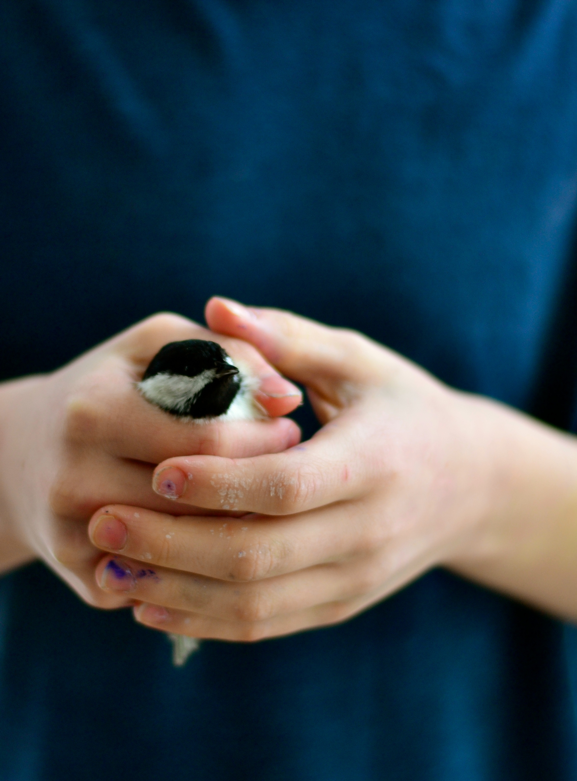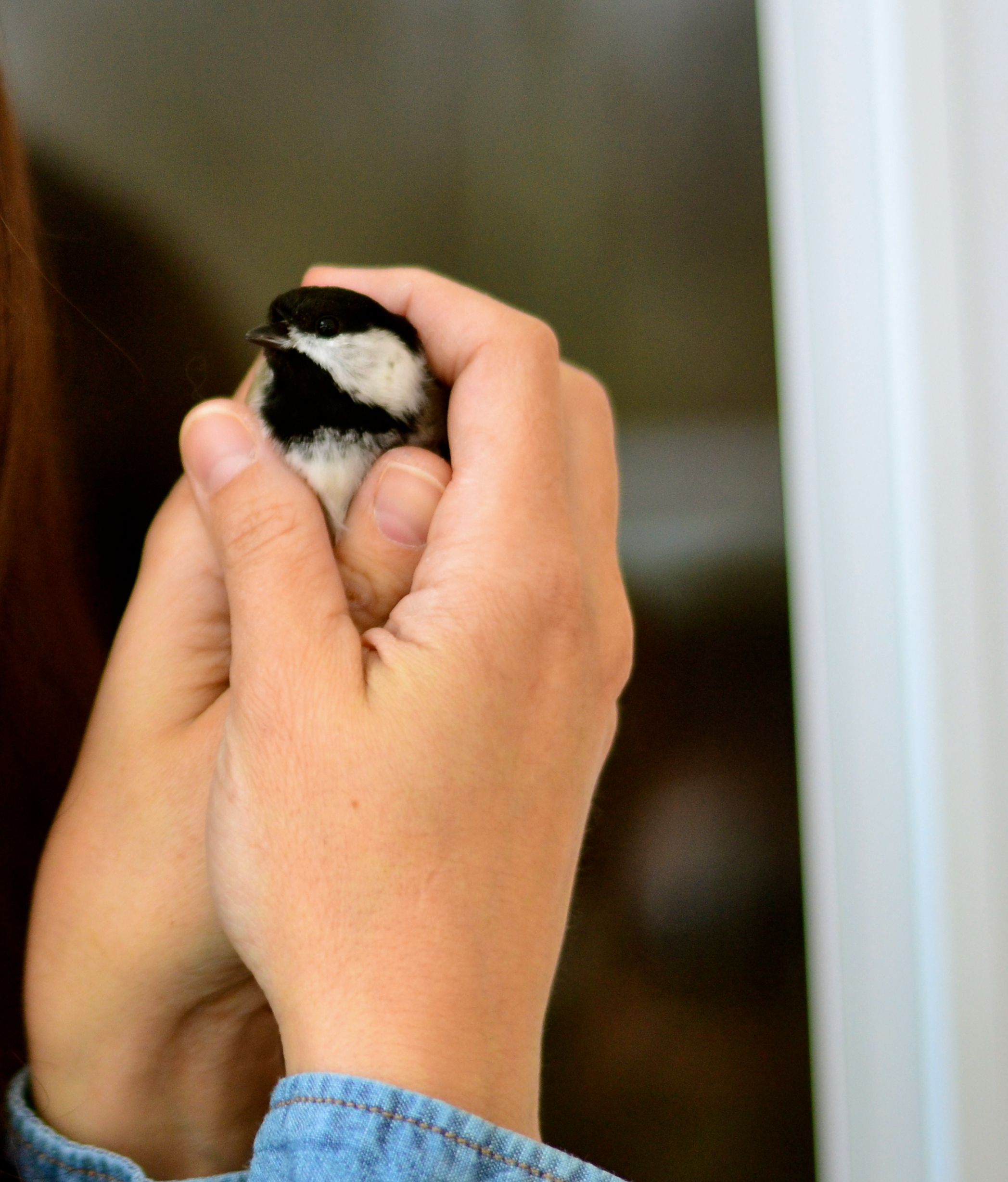 The little chickadee was a brave fighter. He bit Dave’s thumb and held on tight.