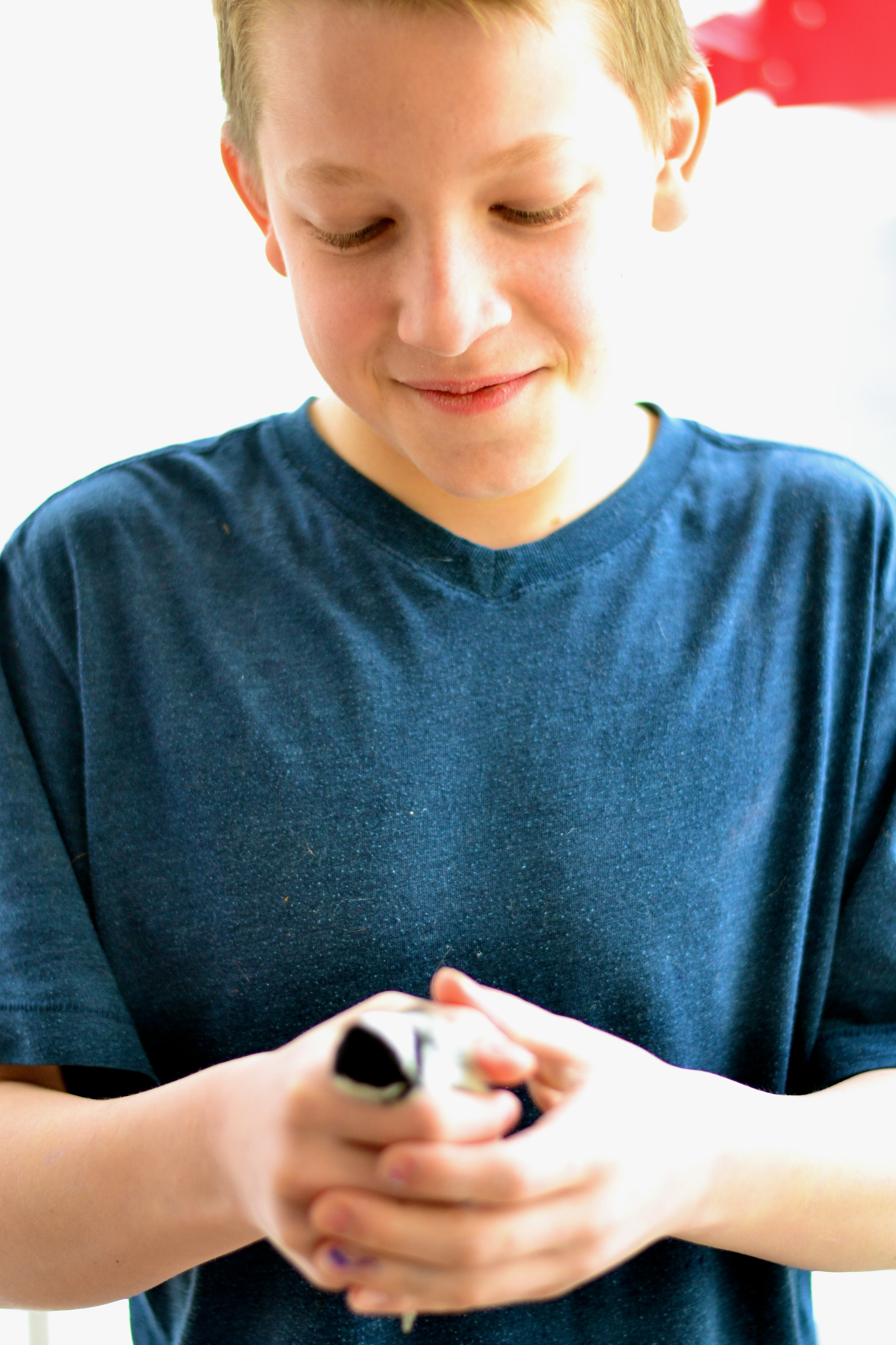 This morning I found Dave peeling a balloon off of a big ball of ice. He had made a water balloon and put it in the freezer over night. He was surrounded by siblings as he peeled it. It wasn’t frozen all the way, so he trotted it back to the freezer……
