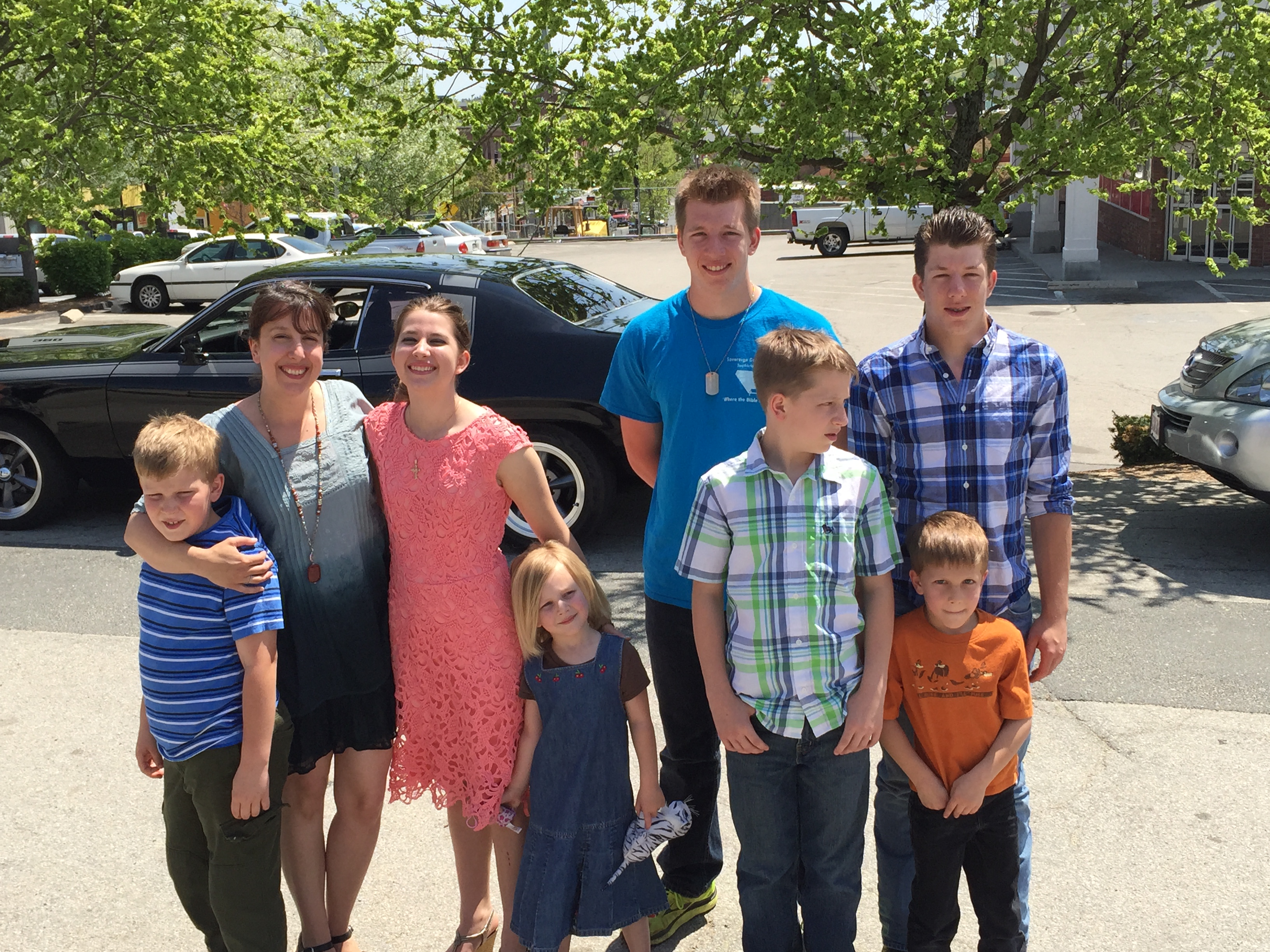 We went to church yesterday morning and had a great service listening to Wally give a missions presentation and then Gary preach the Word.  After church I said, “Since it’s Mother’s Day, all I want is one nice picture with you children.”  Rich happily agreed to take the photo in front of a very cool black car that he and the boys loved……. and you would think I would have learned by now that what I end up is not quite what I was hoping for or picturing in my mind.