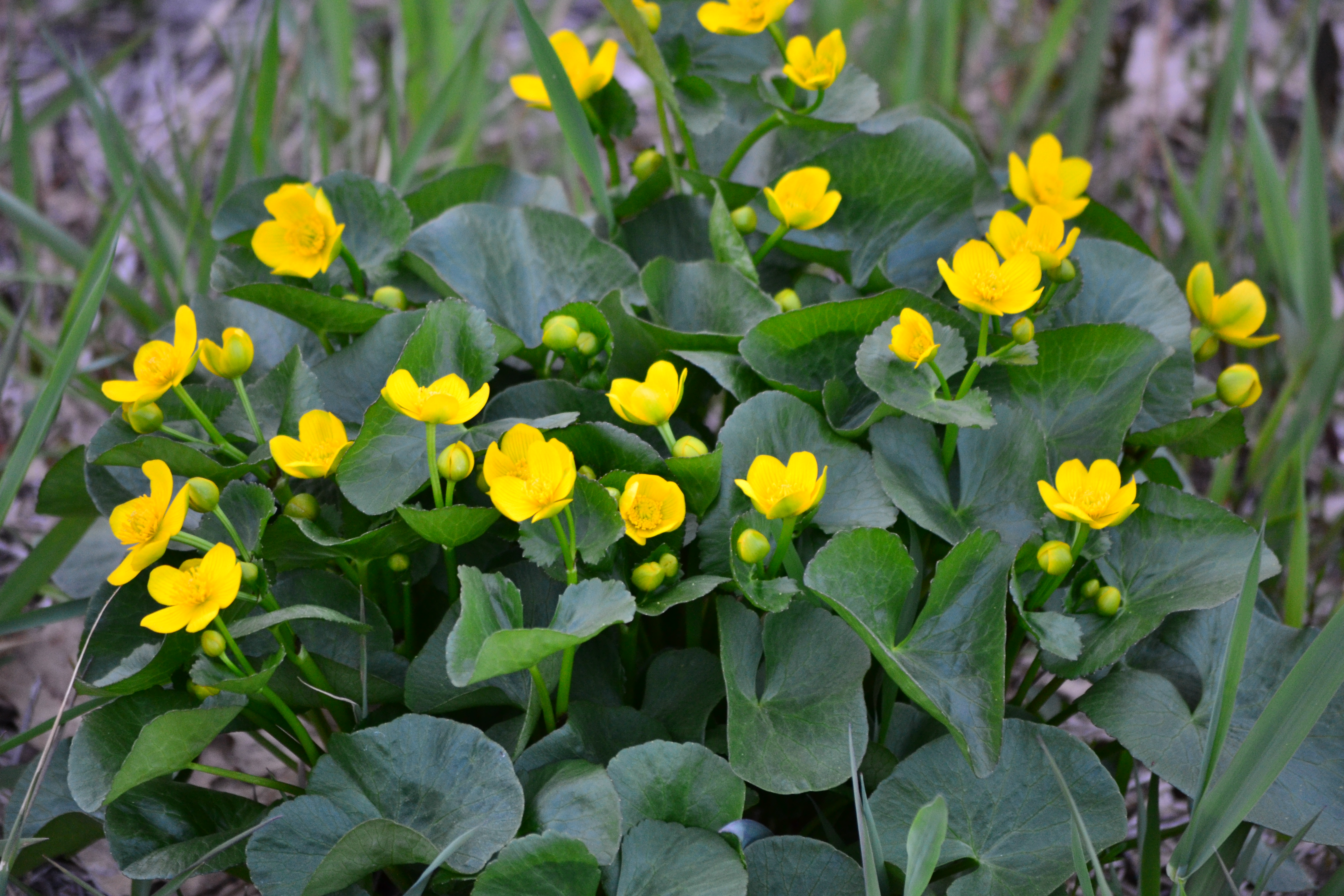 “The flowers of this showy spring plant resemble those of large buttercups rather than true marigolds, of the aster family.  The leaves are sometimes used a potherbs but require several short boilings with changes of water between; they should not be eaten raw.”  ~ National Audubon Society Field Guide to North American Wildflowers