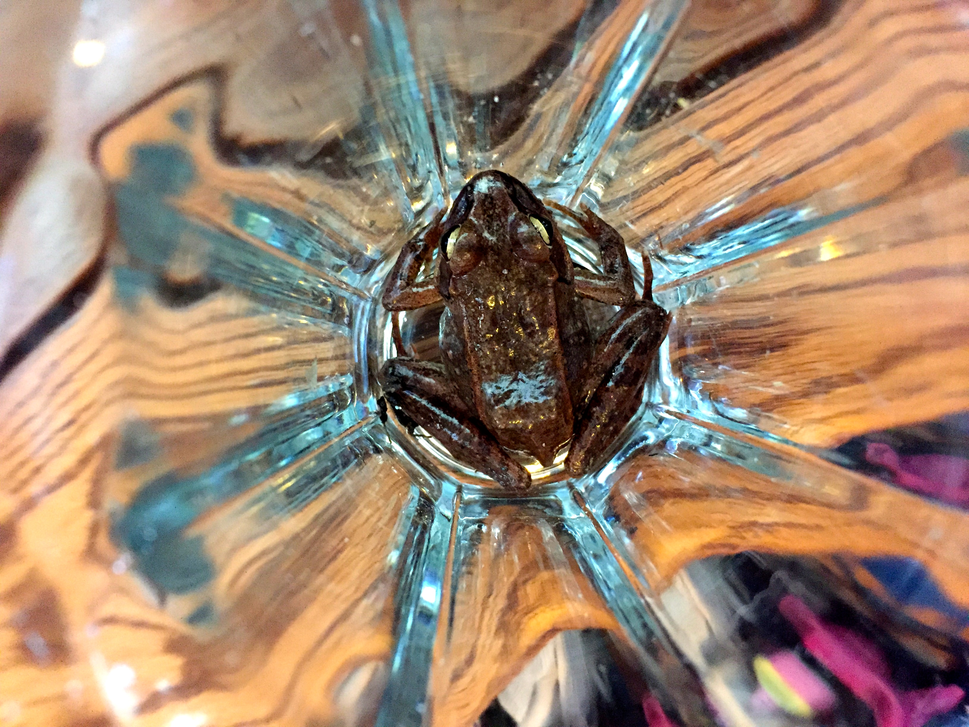 Isn’t this a really cool picture?  David, my 12 year old, caught a couple of these frogs so far this spring and both times brought it to the house to show me and wonder what it was.  I said, “Take a picture of it and we’ll research”.  Turns out it’s a spring peeper.  He catches them down by the stream.  He put it in a glass to take the picture…