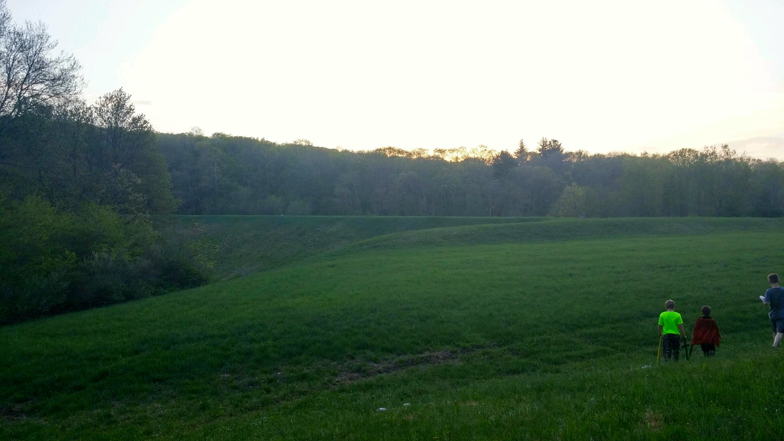 The sun was going down, and I think the way the sunshine is glowing behind the trees is so beautiful.  We had such a nice time on our walk, enjoying everything we saw.  We even got to eat some wild onion stalks that I found.