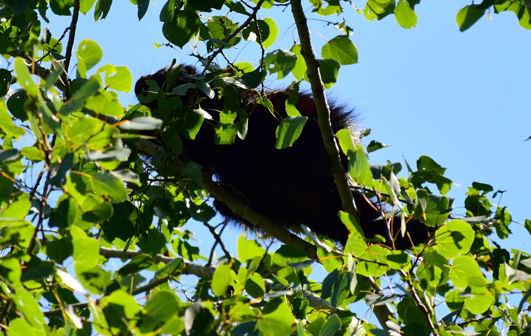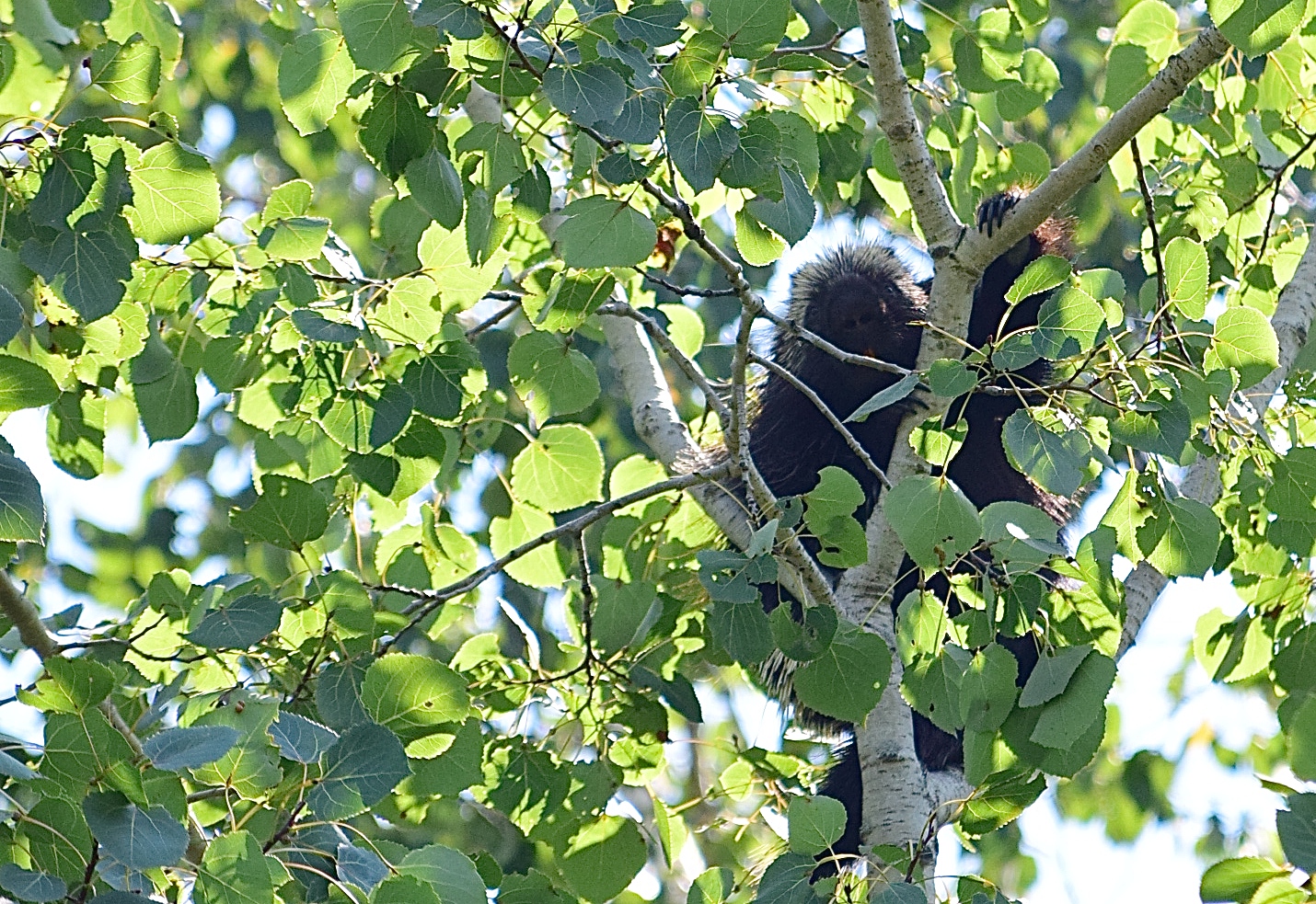 I saw a black animal up in the top of a tree which was approximately 40 feet high. It was slowly reaching out it’s little hand to pull some food to it’s mouth. It was amazing, I had never seen such a thing before. I usually see birds in trees and an occasional chipmunk. My first thought was “raccoon” but a half a second later I knew I was mistaken, but what was it? I kept watching, with my head tilted way back and my hand shading my eyes, then I realized that it was a porcupine. My very first porcupine sighting but I had heard rumors of one about.
