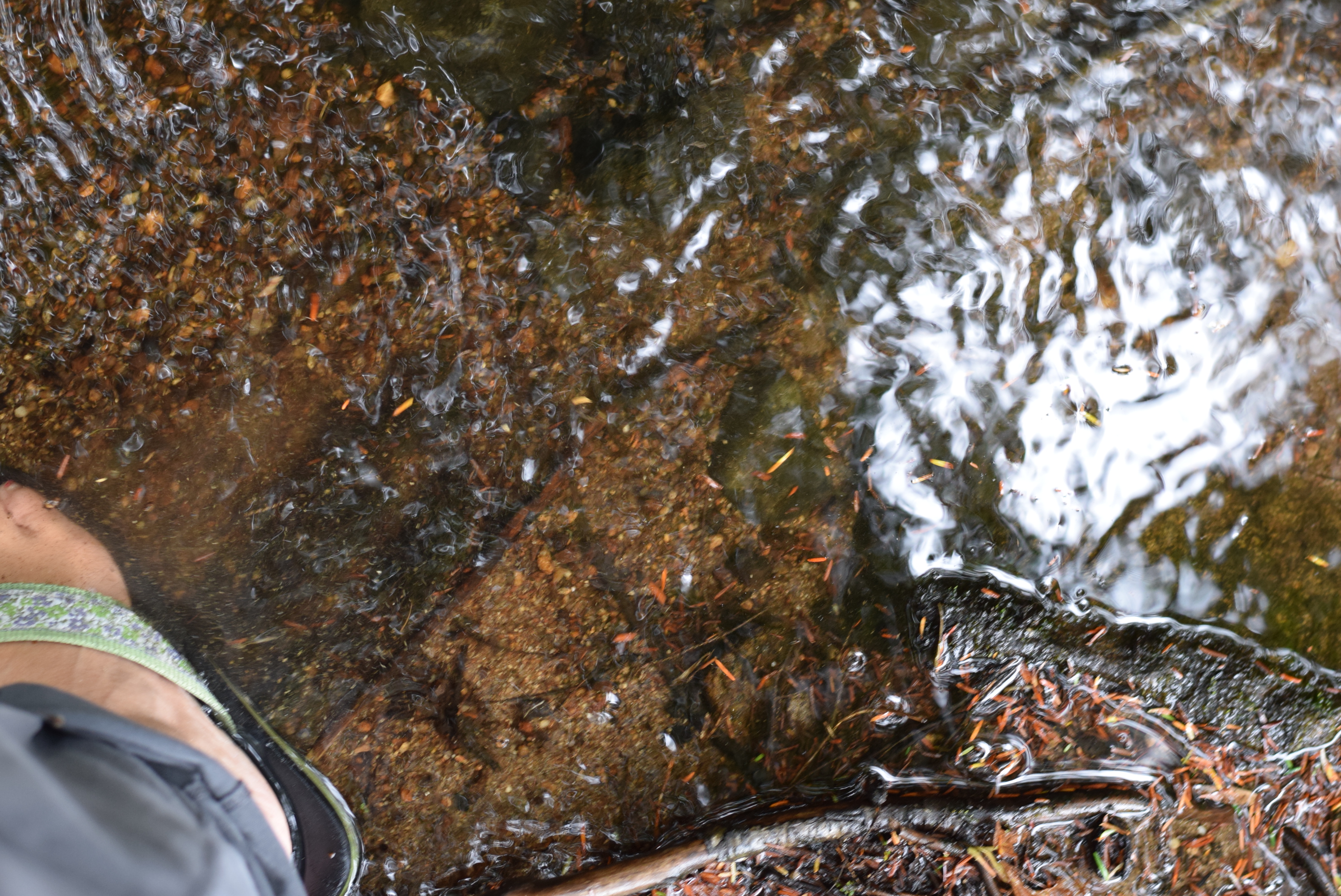 The stream has filled up again, and I did a little wading in the cold water.