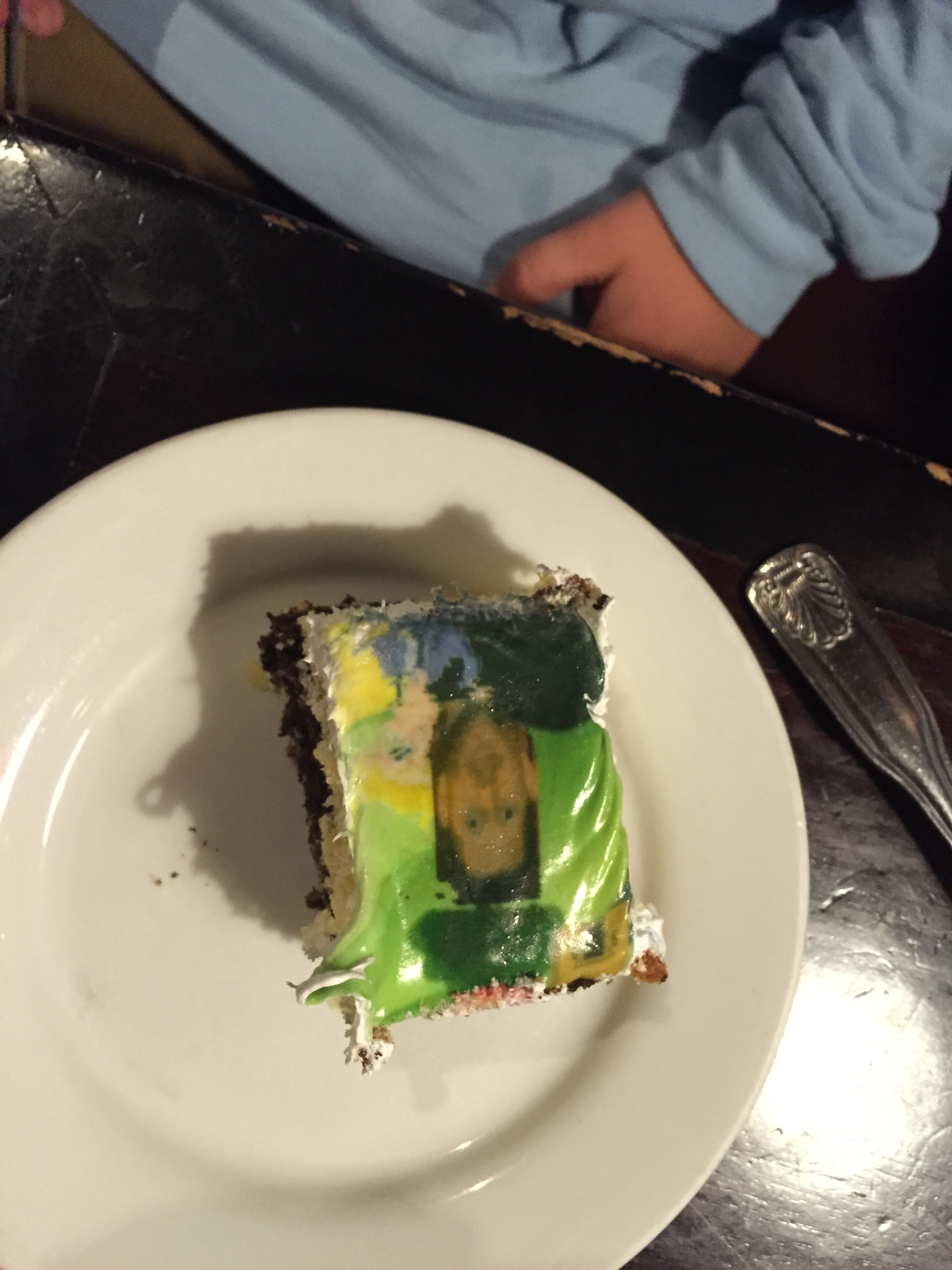 Caleb requested the piece with his Dad’s face.  And he ate it, too!