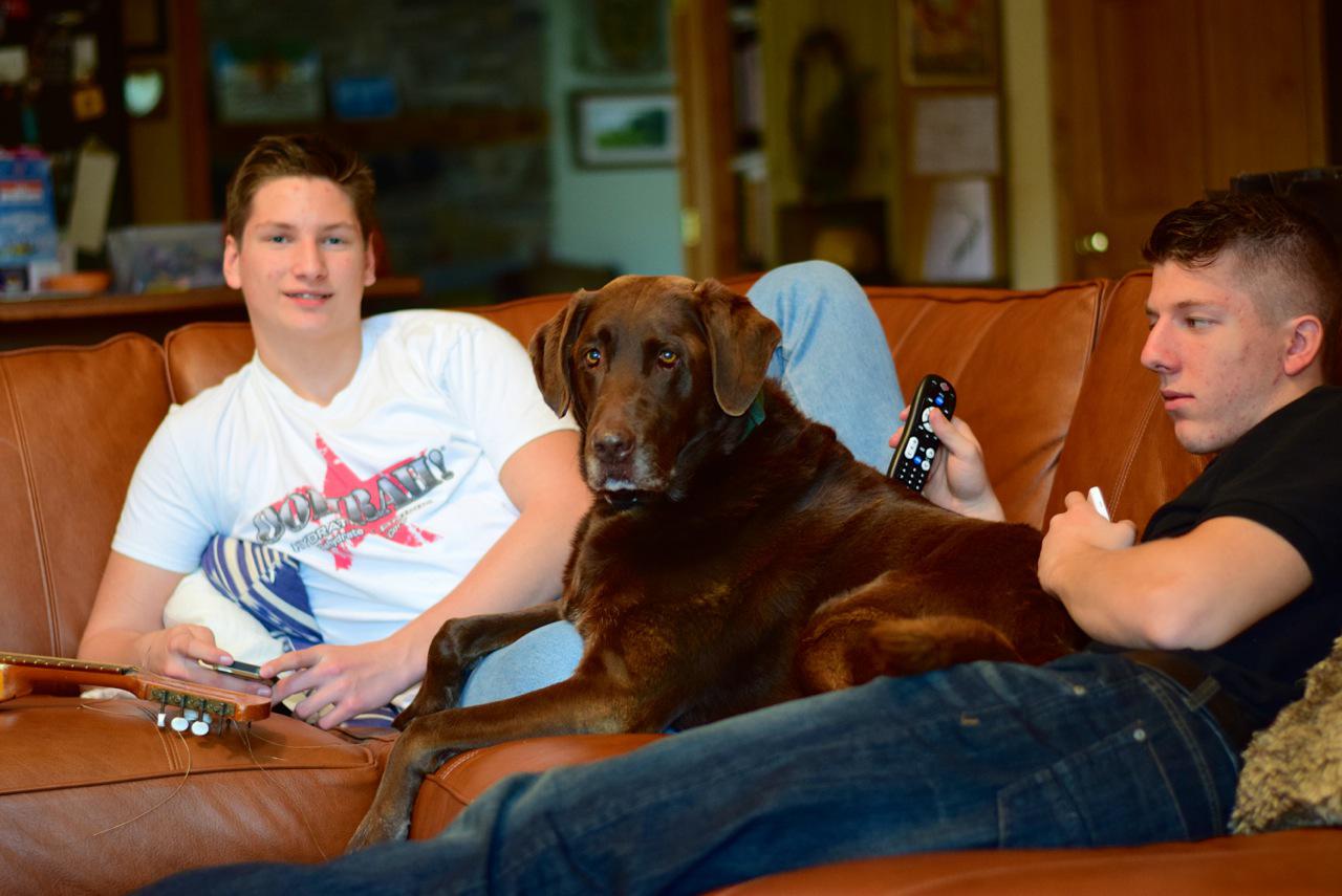 Zak, Parker-the-dog, and Ethan