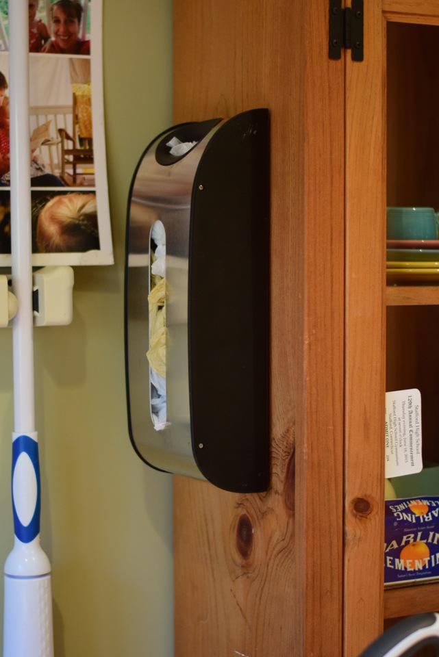 If you fold your plastic bags into footballs, you can fit a boatload more into that container. Ask me how I know this. (My kids make fun of my folding the bags like that- I AM a firstborn detail freak after all) 😉