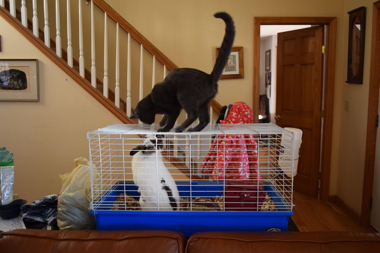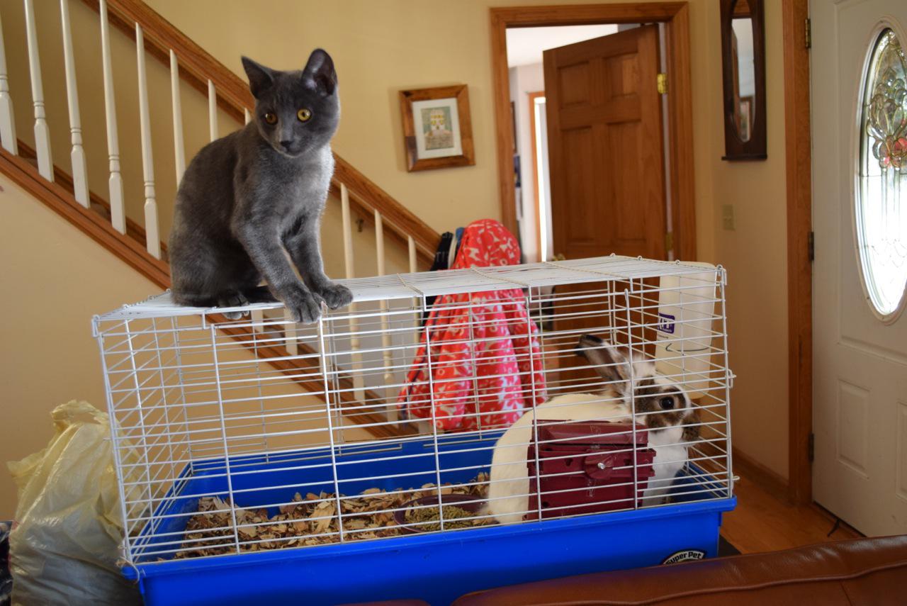 Grace brought her rabbit inside for a little while and we had such a time watching funny Gentleman Gray visit with him from the top of the cage.