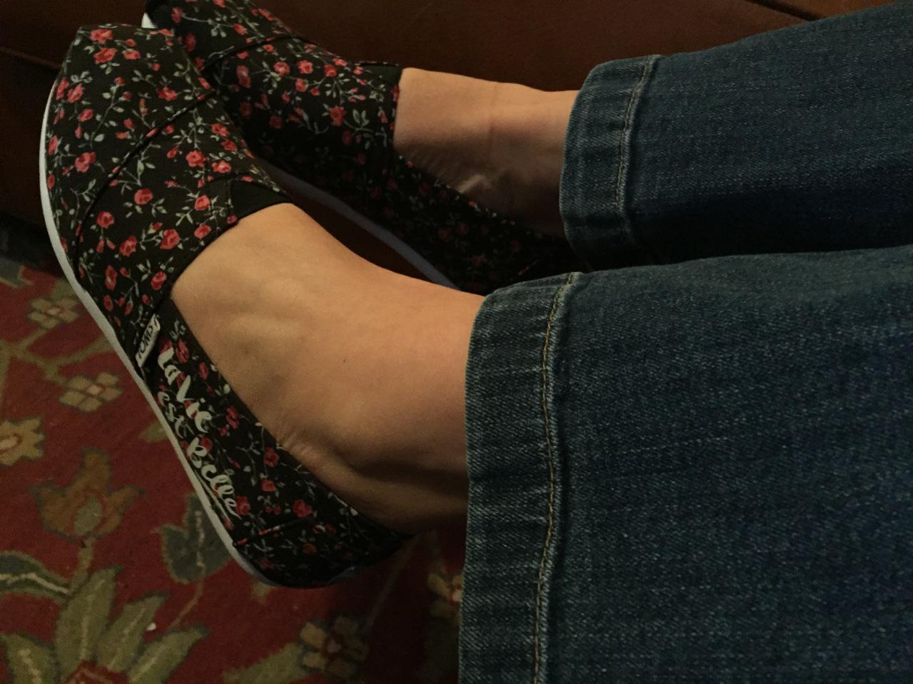 On Monday, I had a dentist appointment. I had to have a filling in one of my very back molars. It was not fun for a variety of reasons. And then my face was numb for several hours. After the appointment, I picked up Zak and brought him home to spend time with Jacob and Ethan. I dropped him off at the house and picked up the kids and we went to see the movie Kung Fu Panda 3 with my sister, and we exchanged back our girls. When I came home, I found that my new TOMS had arrived. I LOVE THEM!!!!!!!!!!!!!!!!!
