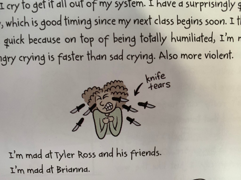 At the bookstore, I was amused. “Angry crying is faster than sad crying. Also more violent.”