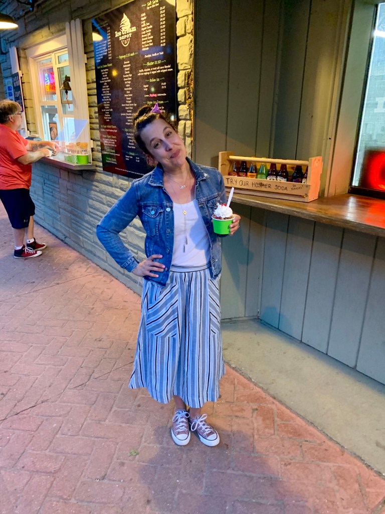 We snuck downtown for ice cream, just the two of us. My son Caleb put the flower in my hair during our earlier in the evening walk (heartmelts)