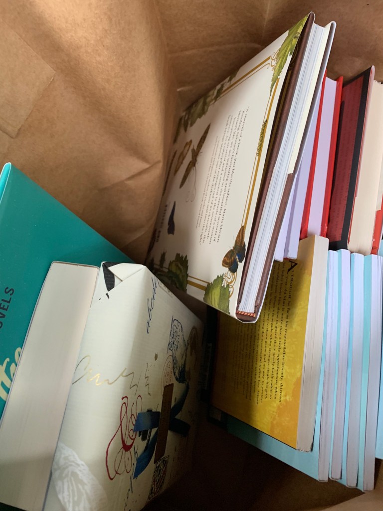 We put our bag o’ books in the car and then, we had a nice lunch together.