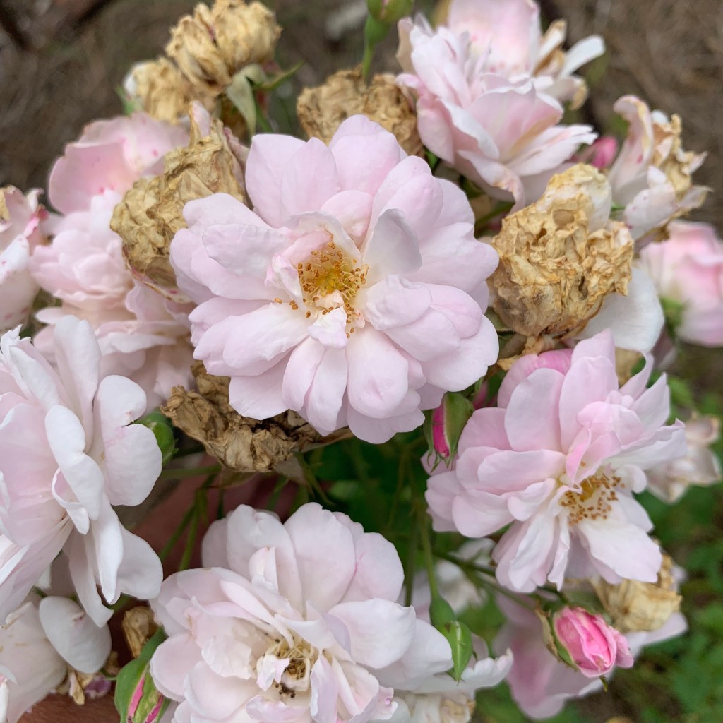 The mix of *buds, freshly opened, and “past their prime” brown and withered* just struck my heart. “messy/beautiful” that’s life. All together, it really is lovely.