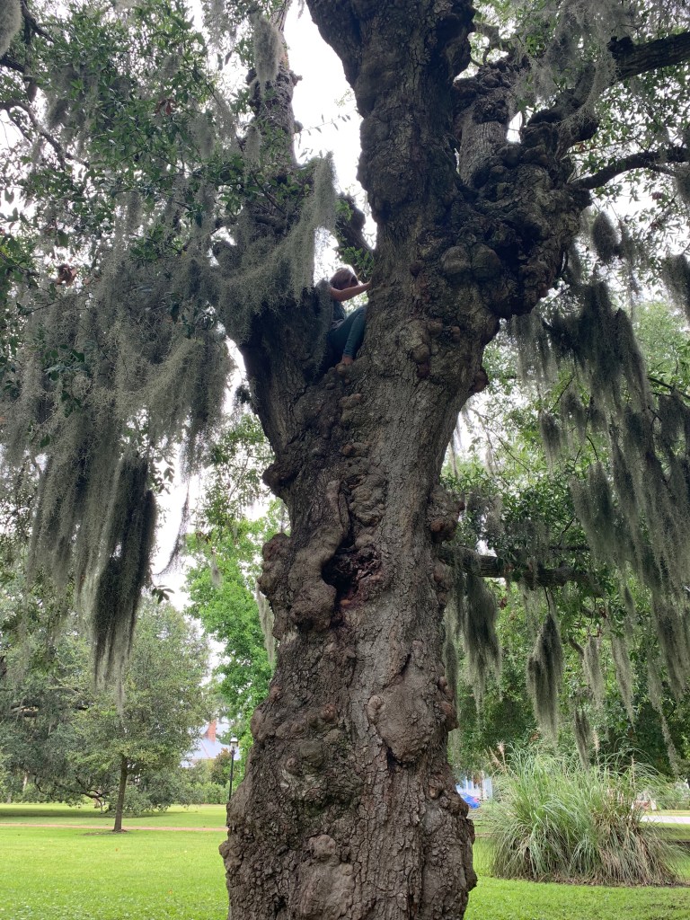 It was a very easy tree to climb, she said. “It has very handy burrs,” I agreed.
