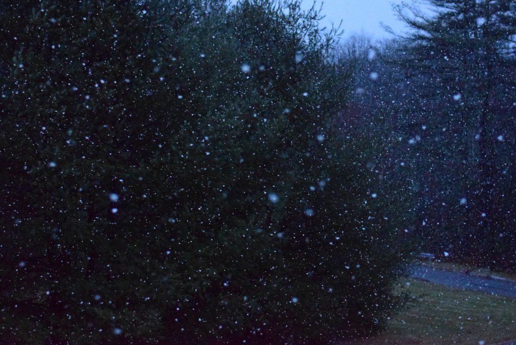 Then, at the end of the day, the heavy wet rain turned into heavy clumps of slush and then big heavy snow. I kept running out to the porch to look, it’s amazing how the weather effects the spirit! I jumped up and down! Seth stripped down to his underwear and stood in it!