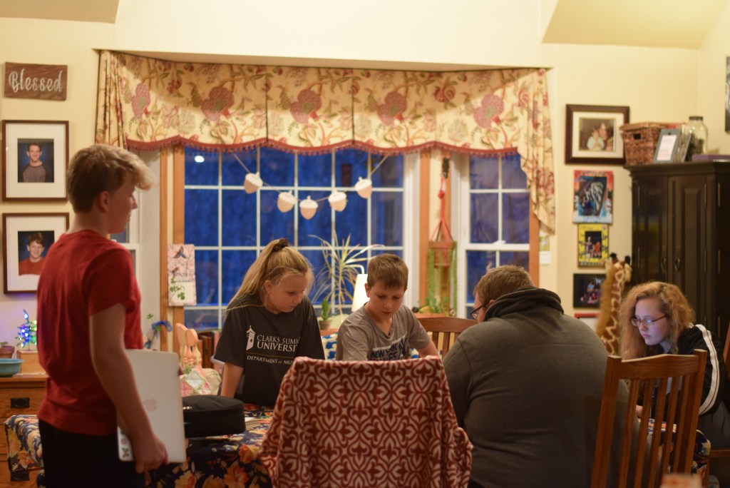 The house is full again even though Jacob and Ethan don’t get home until tomorrow. We had Michael and Brittnee here last night and the chaos made me dream again the dream I have of all of us living together in this same house for always.