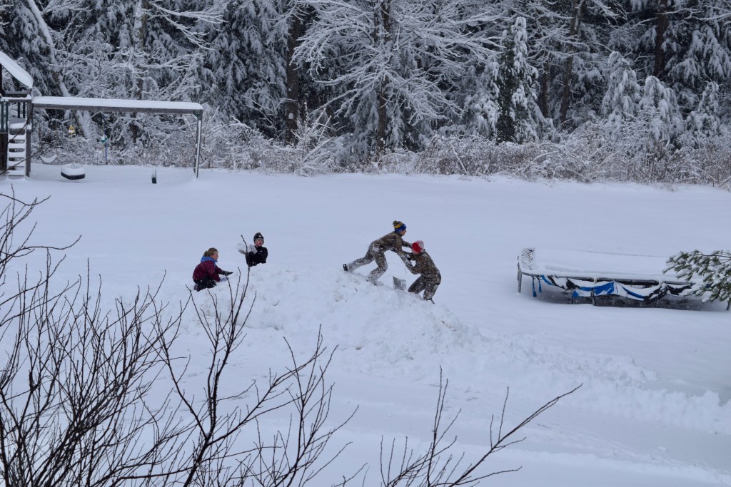 They love it when their dad plows the snow into a big pile. It inevitably becomes a game of “King of the Mountain” with snow as ammunition and a useful cushion to push your friend into. You can rough-house a little safer in a snow pile. Sarah jumped from the top into the soft snow.