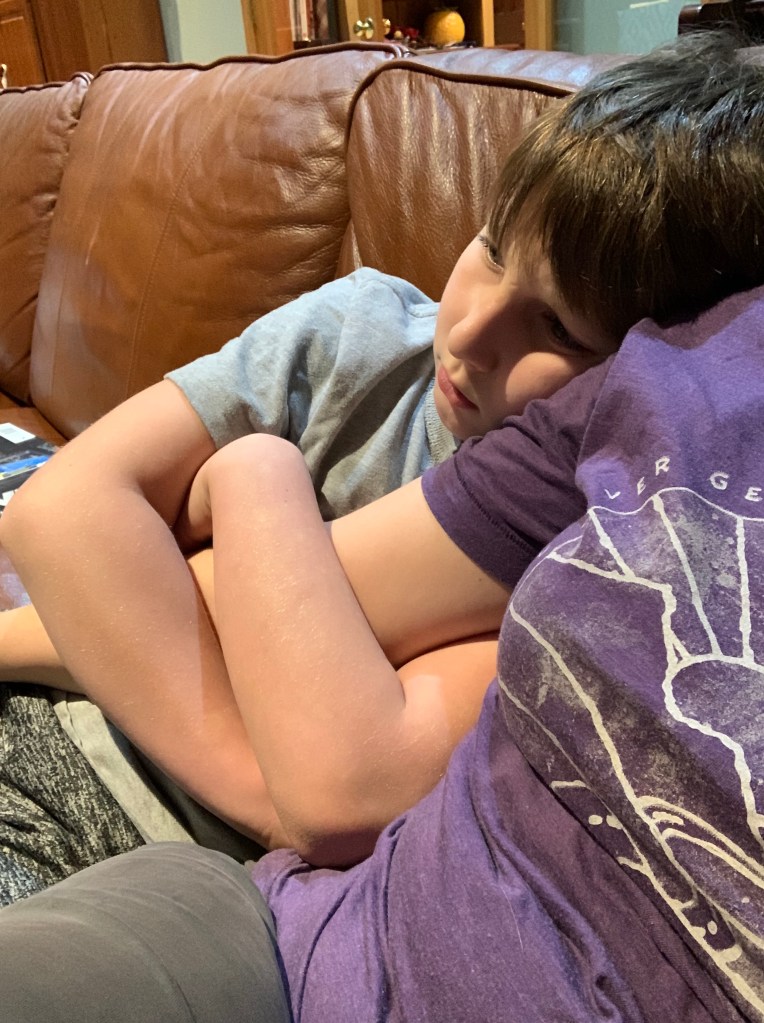 David is still getting over the Worse Cold Ever. He can’t hear very well and has a cough. He went to States and lost two matches and was out. He is now done for the year and I dare say he’s relieved about it. He did so well, and it was a shame he ended on such a low note. In private messages, he admitted “I can’t wait for this nightmare to be over.” Wrestling is brutal, and when you’re sick it’s really a test of character (which he passes every time). I was downstairs doing laundry earlier when I heard him call out, “I know you’re around here somewhere!” And when I yelled from the basement “Who are you looking for?”, he came to the top of the stairs and said, “Oh, there you are. Do you know what time it is?”