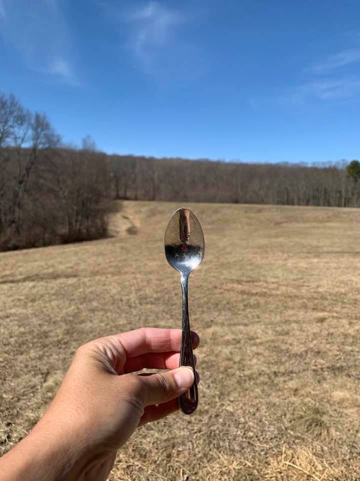 A spoon from my own kitchen! To have children is to be constantly surprised one way or the other.