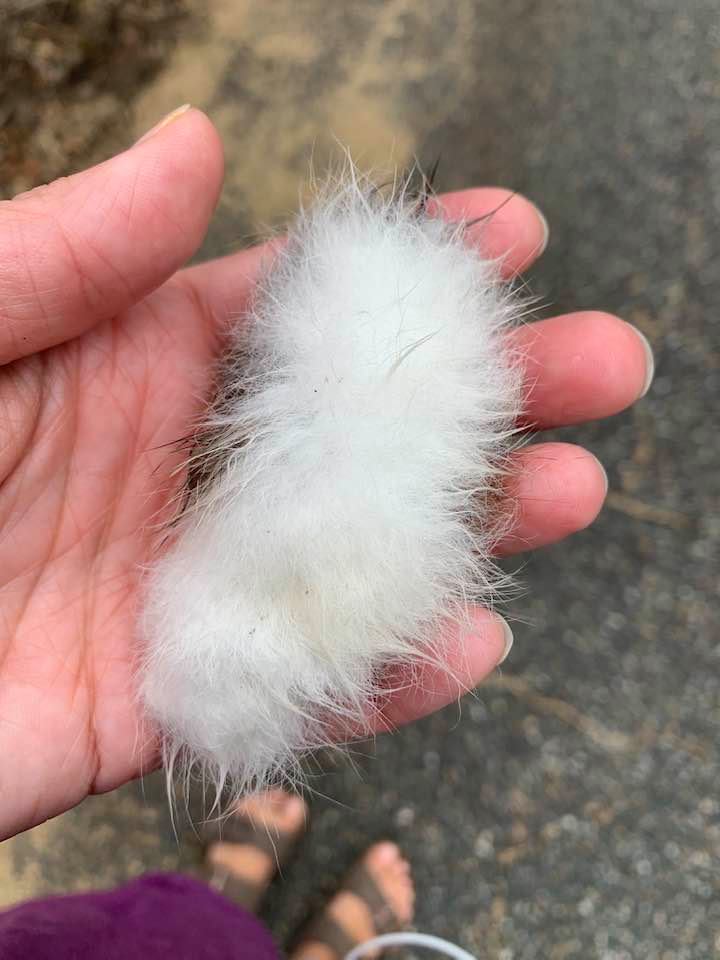 My heart was filled with serendipity. What a beautiful gift from a very unfortunate baby bunny, whom I am sure is missing it rather badly. However, I accepted gratefully for what it was to me, a good luck charm. If a rabbit’s foot is lucky, a tail must be even more so! It was warm in my hand all the way home. It’s sitting right next to me as I type, along with an orange cat.