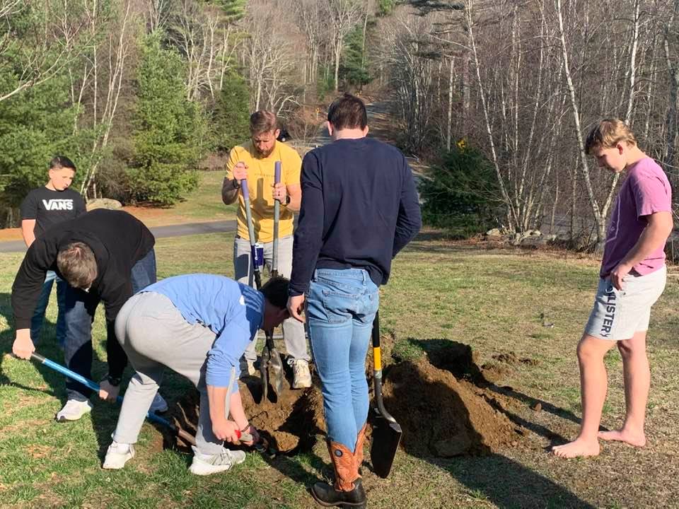 Rich brought him home and the boys dug his grave. Caleb and Ethan had already decided on the location, and it was the same place I had thought of as well. He had a young tree that he would go to with things he liked most (bones, cat food cans stolen from the counter, and stuffed animals he chewed the eyes off), and that is where he is buried now. We are turning it into a place to sit and think about him, with a chair, and now a hanging basket and bird feeder. It’s by the house and the garden and the driveway, and we think about him everyday. When we find one of his personal possessions, we give it to him. His collar is there, and several bones. For two nights after he died, Seth went out to say goodnight before going to bed. Jacob came to visit yesterday and when he came inside the house I noticed he was crying “I was saying hello to Parker.” Oh these children of mine, their hearts are big and strong. A family that includes pets does so much for the growing-up years. Often the silent love of a friend dog or cat is just what a boy or girl needs……