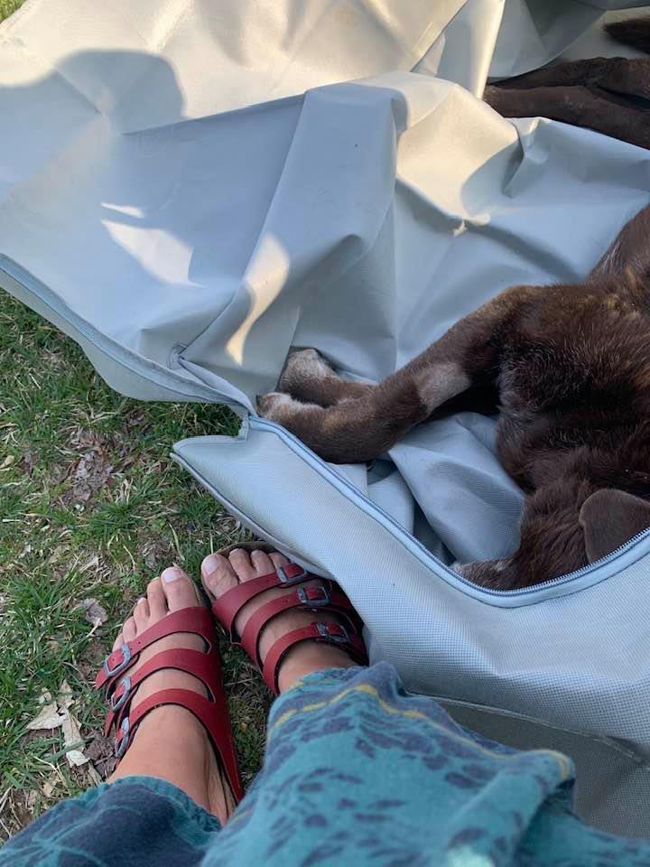 Rich laughed and rolled his eyes when I spent over 200 dollars on the best dog bed on chewy.com. The thing had a tempur-pedic mattress and was big enough for three dogs, or, one dog and several children at once. It came with a removable cover and was brown just like him. Parker came to love his bed and just a few days before he died I noticed he was wandering around acting lost and I realized his bed was blocked by furniture. After I pulled things back where they belonged, he walked over and gently licked his bed and then got in it to scratch and scratch and then turn around and around, and sleep.