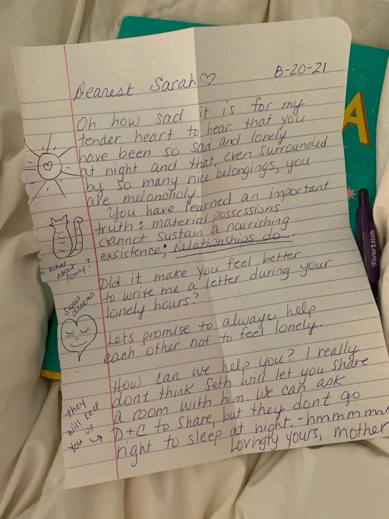 Love that you wrote her back! What a cute way to communicate! Hope Sarah feels less lonely soon. We should be neighbours. Between Ashley’s too small window and the Sarah’s loneliness…They could visit each other and feel better! who knows…these two girls could be best friends! 😀