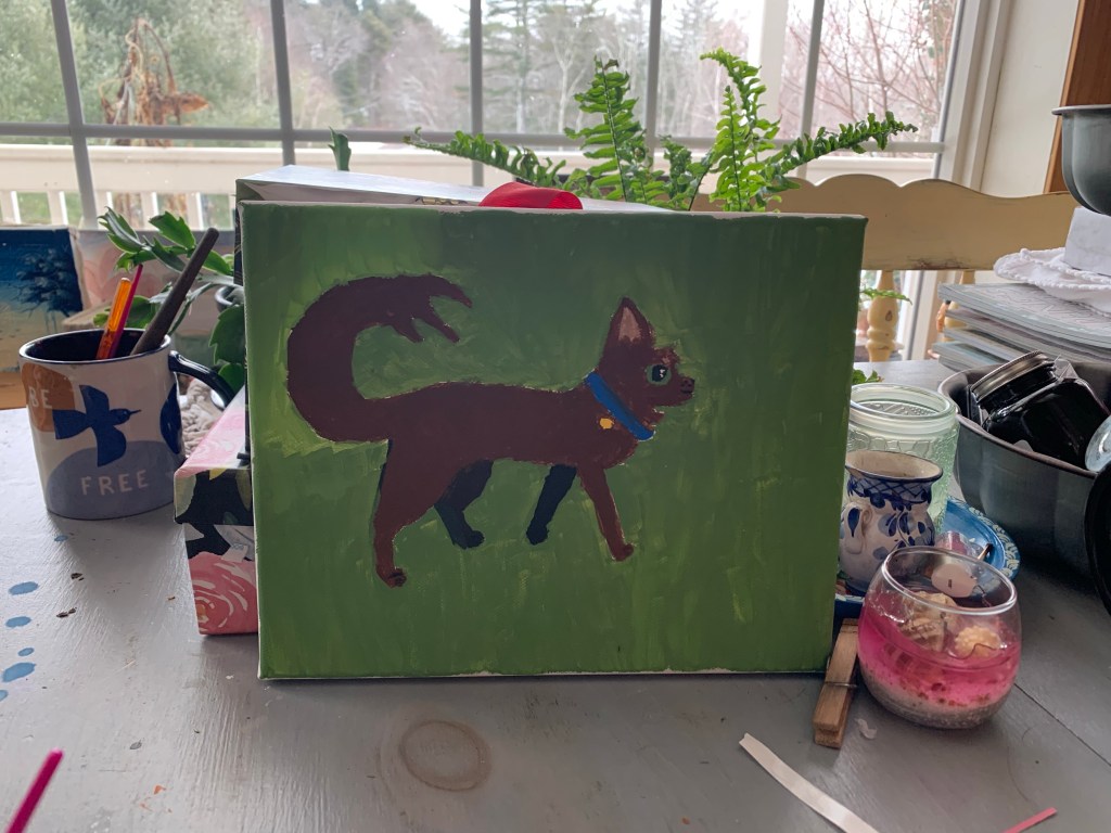 When I was visiting my Aunt Colleen and her girls recently she got out all the painting things and the four of us sat at the table to paint pictures. I realized how relaxing it was as we each thought about what we would paint and then set to work.